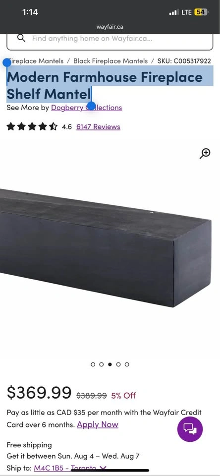 Modern Farmhouse Fireplace Shelf Mantel 72x9