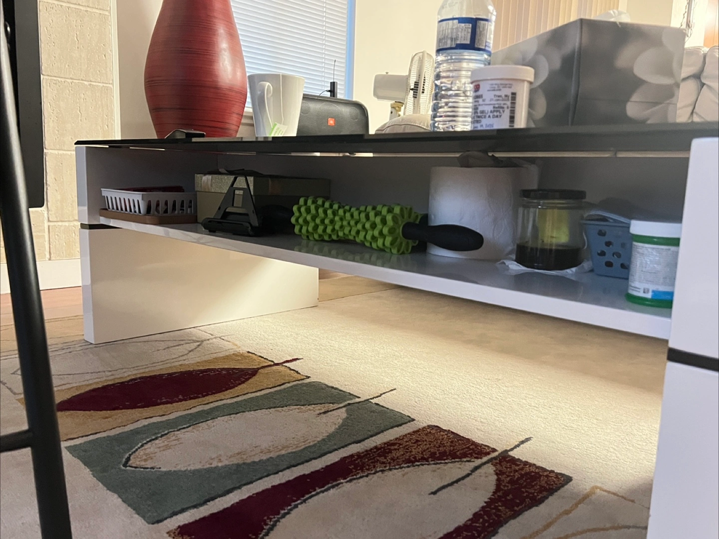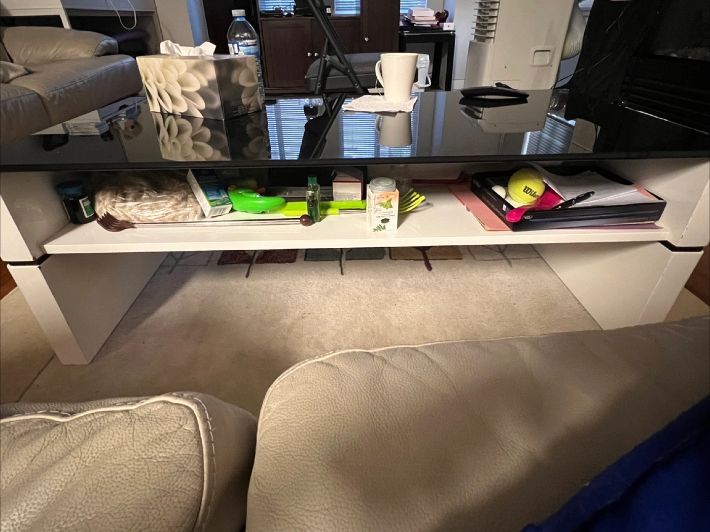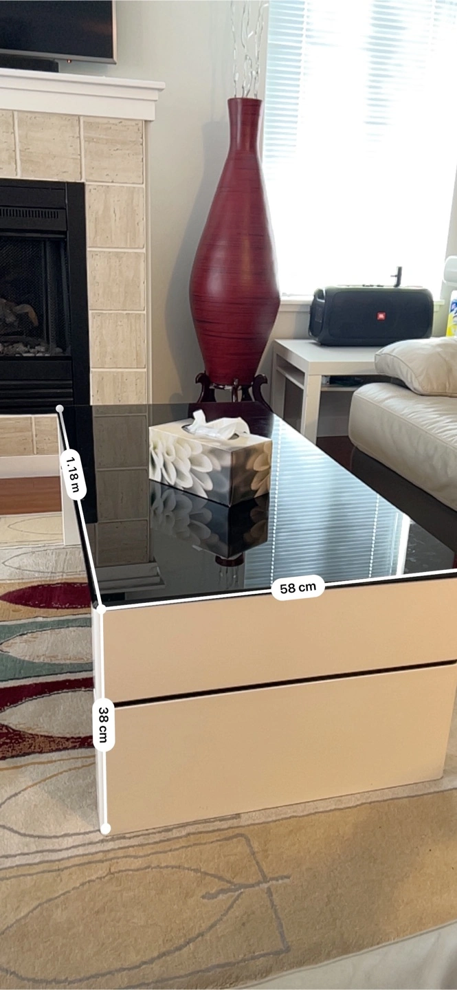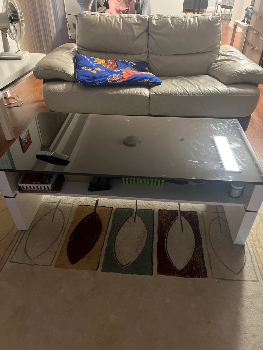 Selling a stylish modern coffee table with a black glass top and clean white base. Large surface: 1.2m x 60cm, height: 40cm Built-in full-width lower shelf for books, remotes, or storage Clean and fully functional – just minor cosmetic use Sleek modern look fits any living room or condo setup Retails for ~$250 — asking $50. From Ikea Pickup in Surrey – Must bring truck large enough to fit coffee table