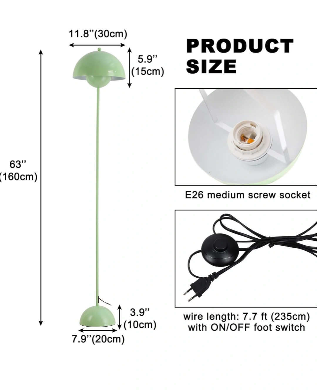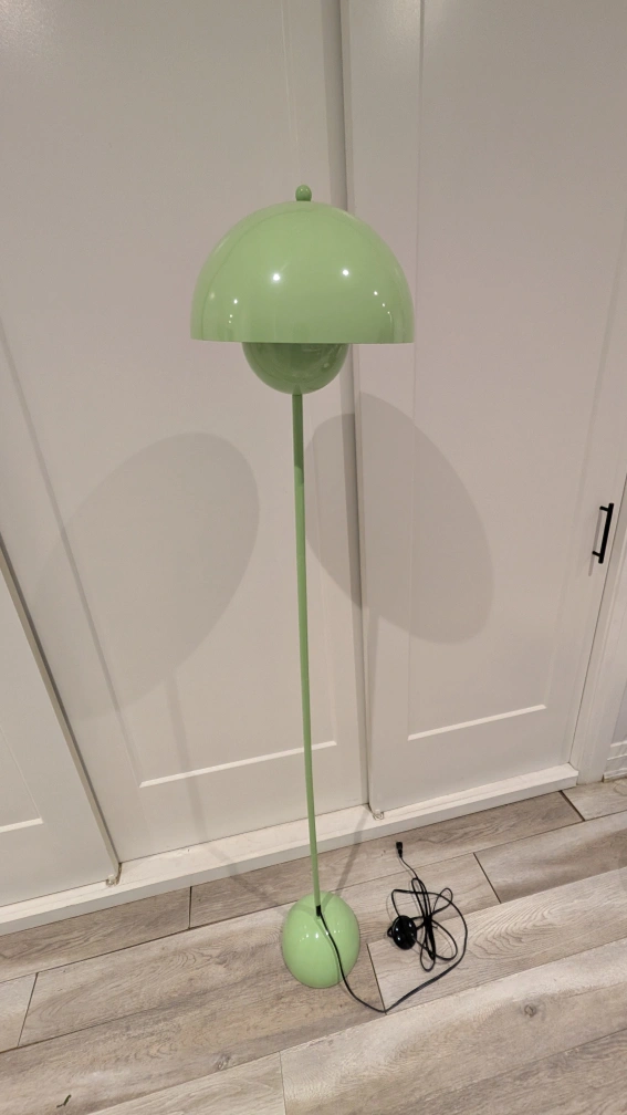 modern green floor lamp. perfect for a mid century modern or art deco style home. never used. measurements in the last photo.