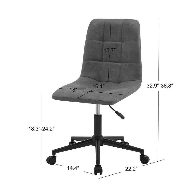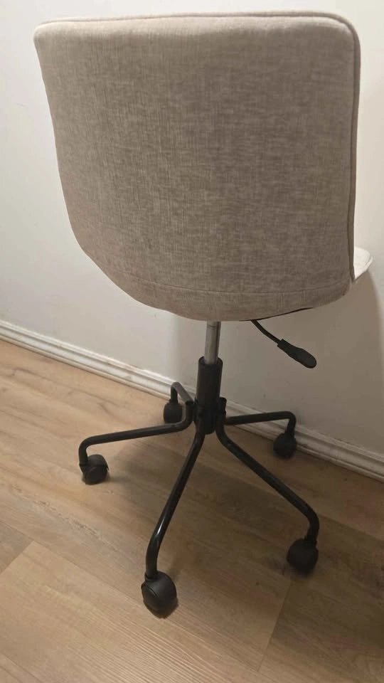 65Comfortable and stylish office chair in light grey fabric with a sturdy black metal base. Smooth-rolling wheels and 360° swivel make it perfect for study, work, or home office setups. Gently used and in great condition. Dimensions: 22.5” (W) x 22.5” (D) x 36.3” (H) NOTE: The dimensions image is not exactly the same model — it’s only for reference. Pickup: 1300 Mississauga Valley Blvd.