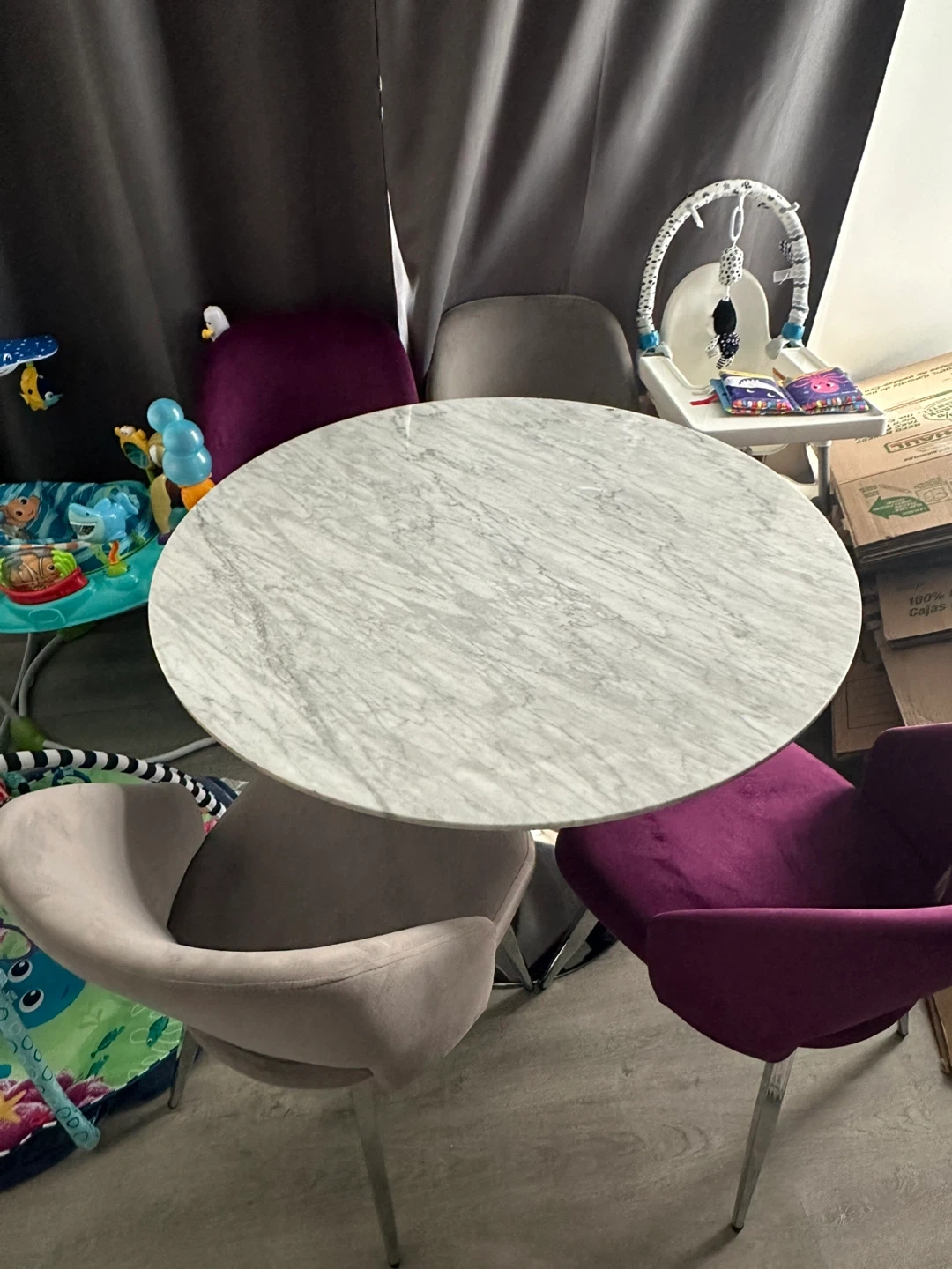 10Modern Marble Dining Set – Structube “Martini” Table + 4 Chairs Upgrade your dining space with this stunning modern marble dining set. The Structube Martini Dining Table features a real solid marble top with a sleek chrome base — elegant, timeless, and built to last. The set also comes with 4 dining chairs that are literally like new! Both stylish and comfortable, these chairs were originally $379 for a set of two (so over $750 total new). 🪩 Details: • Table diameter: 42” • Height: 30” • Solid marble top (real, heavy, and luxurious) • Chrome/metal base – sturdy and modern • Original price: $600+ • Excellent condition ⚠️ The table is very heavy — you’ll need a truck/van and at least two strong people for pickup. 💰 Price for the full set: [$500] must be able to pick up by November 17, 2025 📍 Pickup in: [brock and Rossland] pickering ON