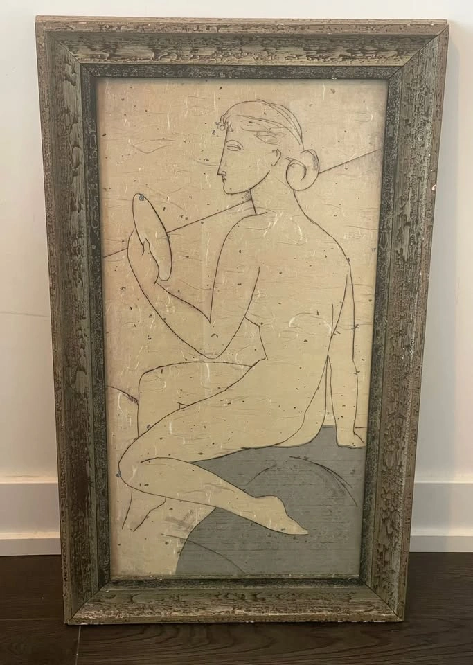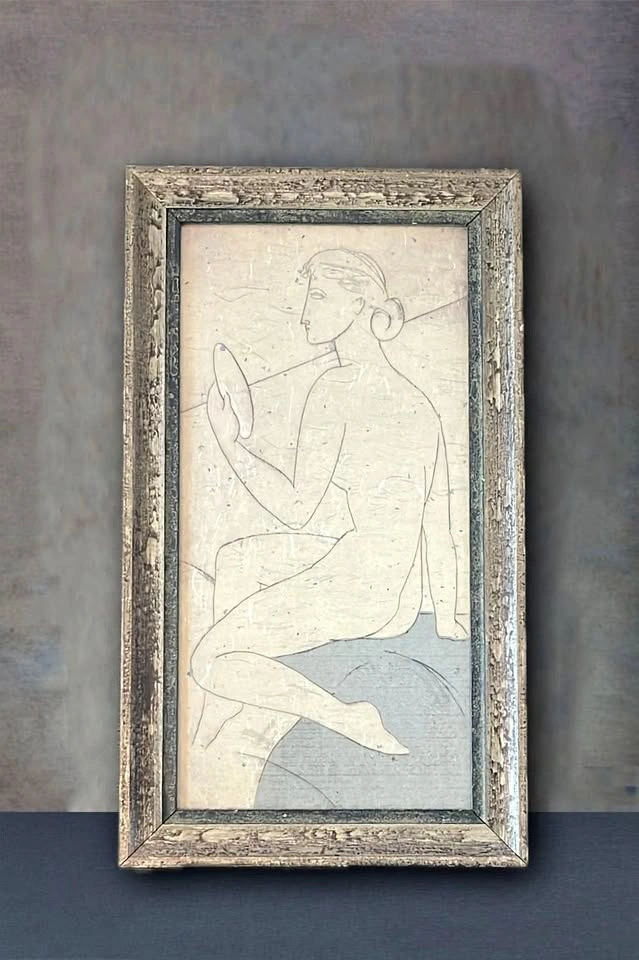 Elevate your space with this elegant line-drawn nude artwork framed in a beautifully weathered, vintage-inspired wooden frame. The piece embodies a timeless minimalist aesthetic, blending modern design with rustic character. 📌 Details: Subject: “Narcissa Nude” – minimalist line art figure Size: Substantial framed piece, ready to hang Frame: Distressed wood finish, adds depth and character Style: Contemporary / Modern / Vintage-inspired décor This is not a mass-market print — it was originally curated by an interior design firm for luxury staging projects, making it a unique statement piece perfect for living rooms, bedrooms, or stylish office spaces. 40cm x 70 cm A versatile artwork that balances sophistication and simplicity, creating a serene focal point wherever it’s placed. Pickup: Oakville, ON