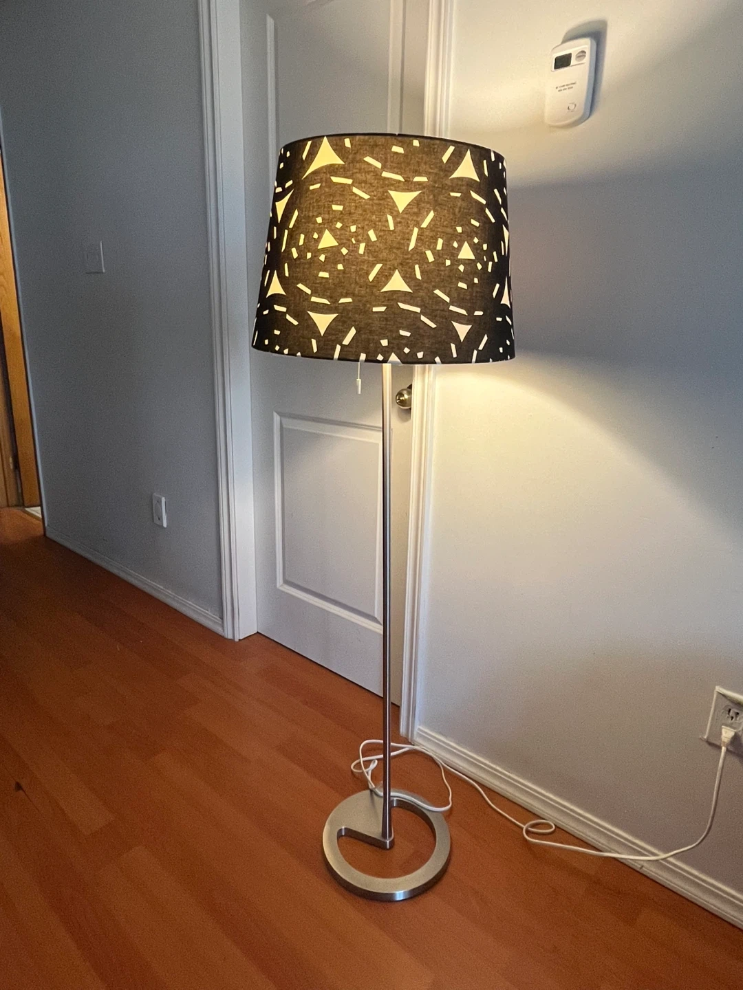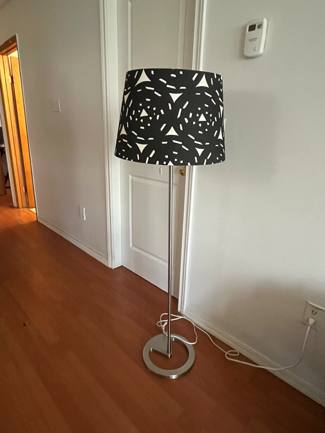 33Here's a stylish floor lamp that would look great in any room! It features a black and white patterned lampshade and a nickel plated white stand in excellent condition. Coming with bulb. Originally $139+tax in IKEA Cash only Pick up at North Burnaby