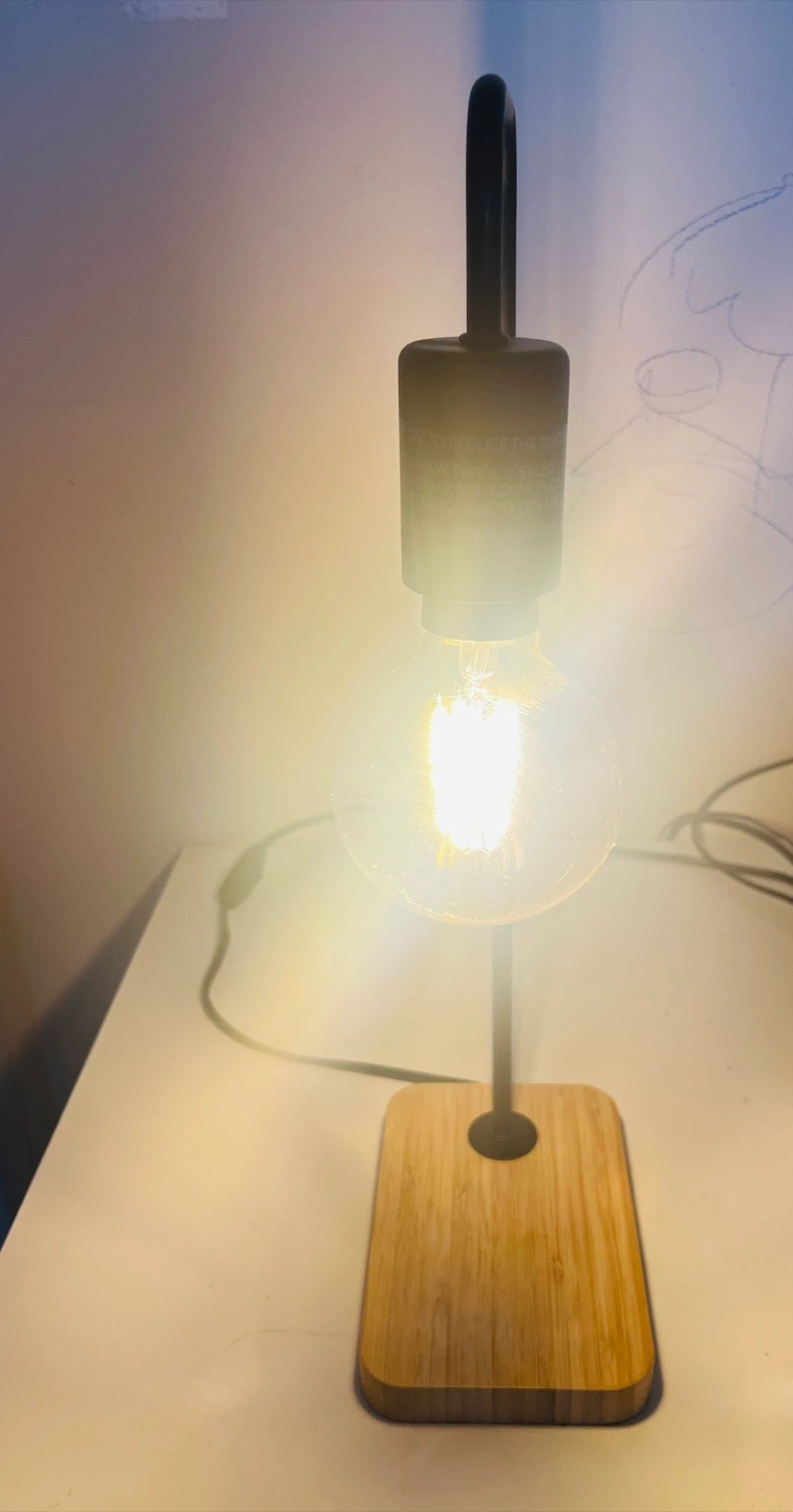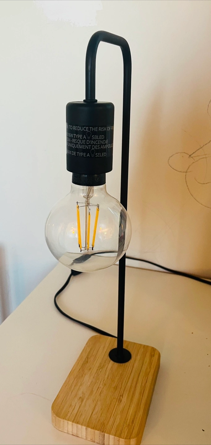 44Selling a modern table lamp with a stylish Edison bulb. It features a sleek black metal frame and a natural wood base. Intersection: Hurontario and Steeles