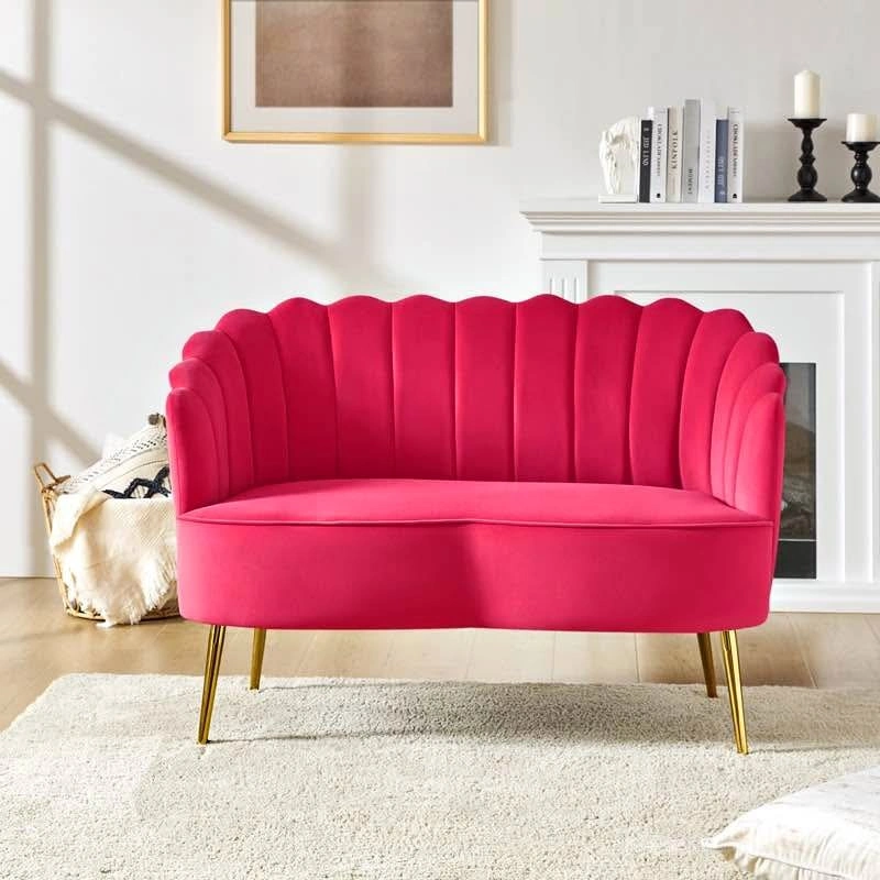 Selling a stunning hot pink scallop-back velvet loveseat sofa, originally purchased from Wayfair. ✨ Style: Art Deco / Modern Glam ✨ Material: Velvet upholstery + gold metal legs ✨ Color: Hot pink / Fuchsia ✨ Condition: Gently used – still vibrant and clean (see real photo) ✨ Original price: CAD $630 + tax (retail)=$712 CAD with shipping fee 🛋️ Fits 2 people comfortably – perfect for apartment, studio, bedroom or boutique 🧼 From smoke-free, pet-free home 💰 Asking: $400 OBO (or best offer) 📍 Pickup in Markham ❣️➕ Free 2 beautiful throw pillows (bought with $120 for two) included with full-price offer! 💬 Message for viewing or quick pickup!