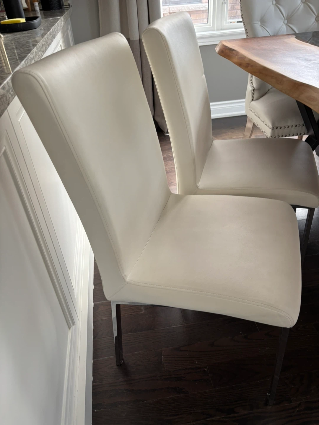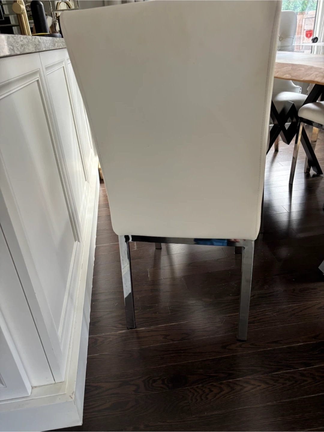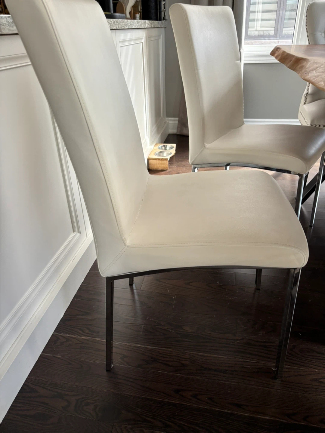 74Selling modern dining chairs. They feature a sleek, minimalist design with white upholstery and chrome legs. These chairs would be a great addition to any dining room or kitchen space! They are in great condition and ready for a new home PRICE is per chair $80
