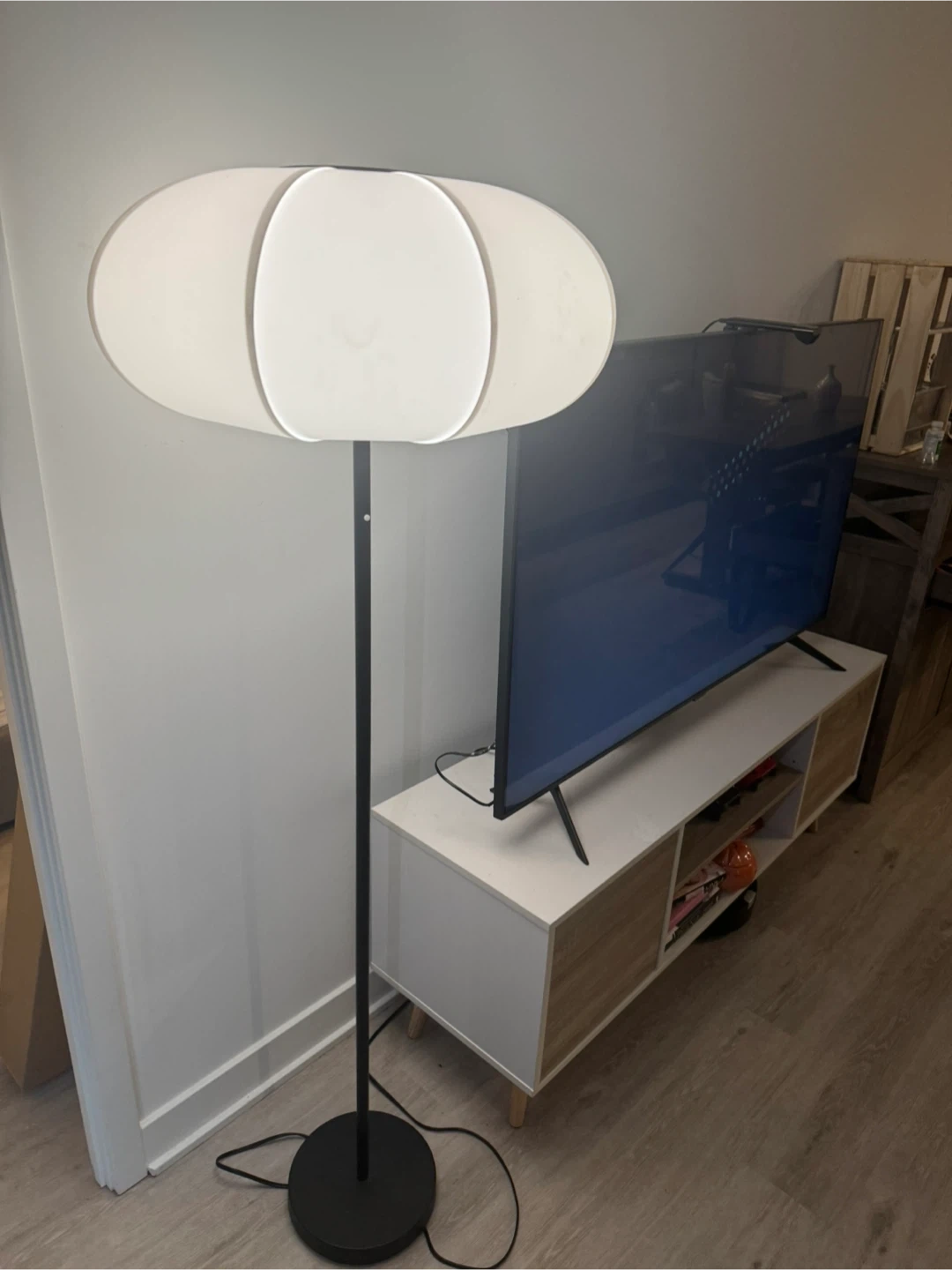 208Selling this modern white floor lamp – used for only about 2 months, I’m just changing up the style of my living room. -Soft, diffused light that’s perfect for cozy evenings or reading. -Clean, modern design with a white shade and slim black metal base. -Stable round base that doesn’t wobble and fits easily beside a sofa or TV unit. 💡 Note: The lamp does not come with a bulb by default, but I’m happy to include a standard non-smart white LED bulb for an extra $5 if you’re interested.