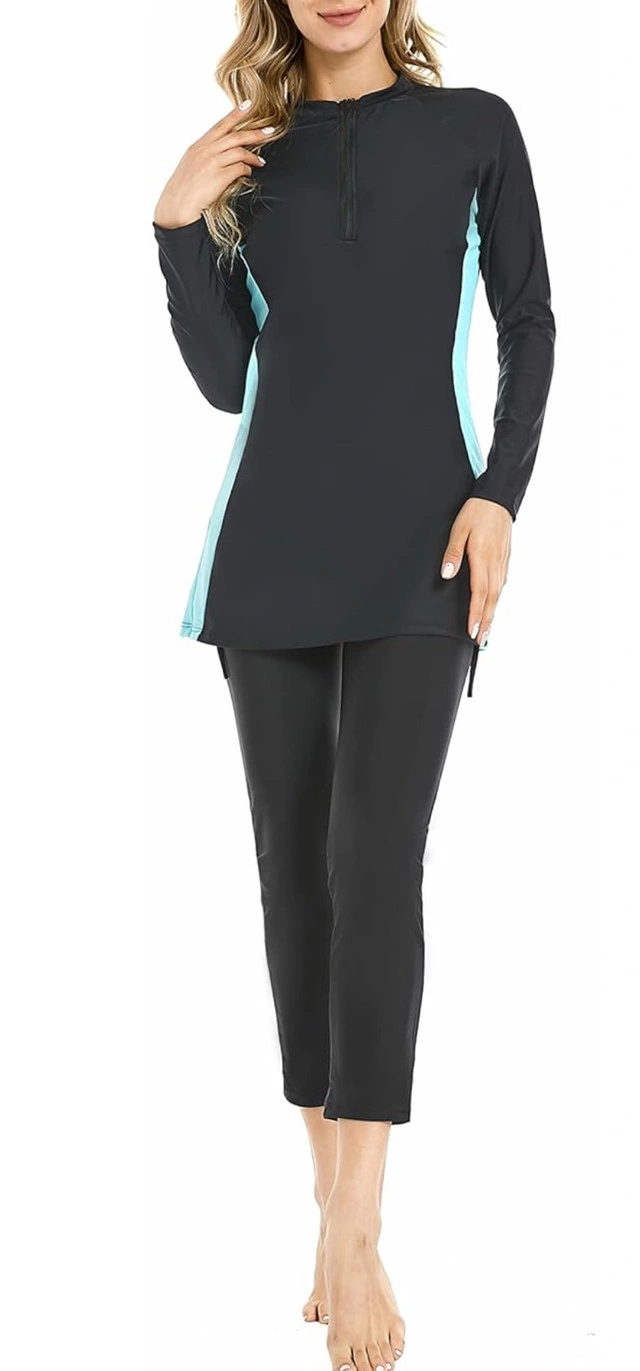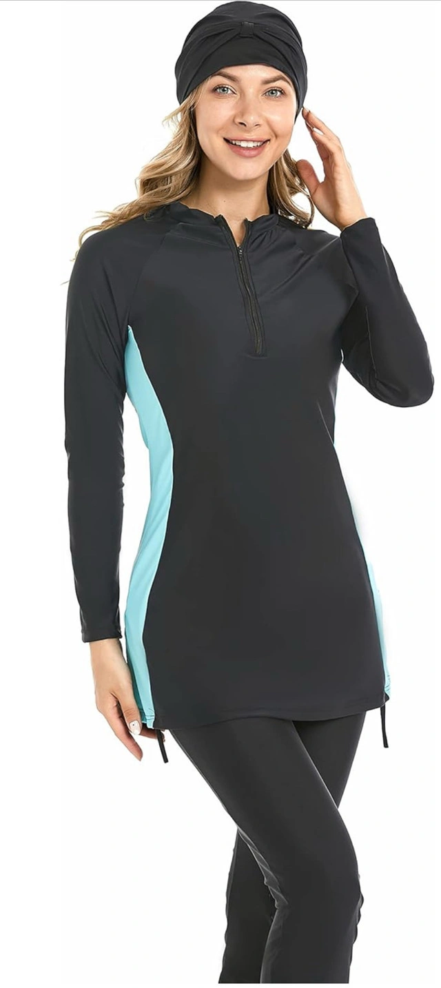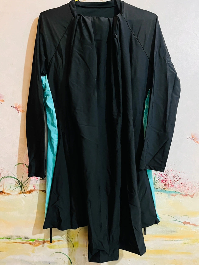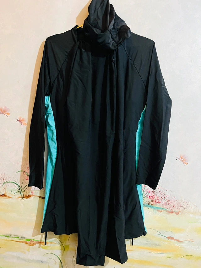 Get ready to make a splash with this black and turquoise modest swimwear set! This set includes a long-sleeved top with a front zipper, leggings, and a swim hijab. This swim set is in great condition and ready for its next swim. Key Features: * Long-sleeve top with front zipper * Leggings for full coverage * Swim hijab included Don't miss out on this perfect swimwear set for those who value modesty and comfort. Pickup is in Brampton near Sheridan college.