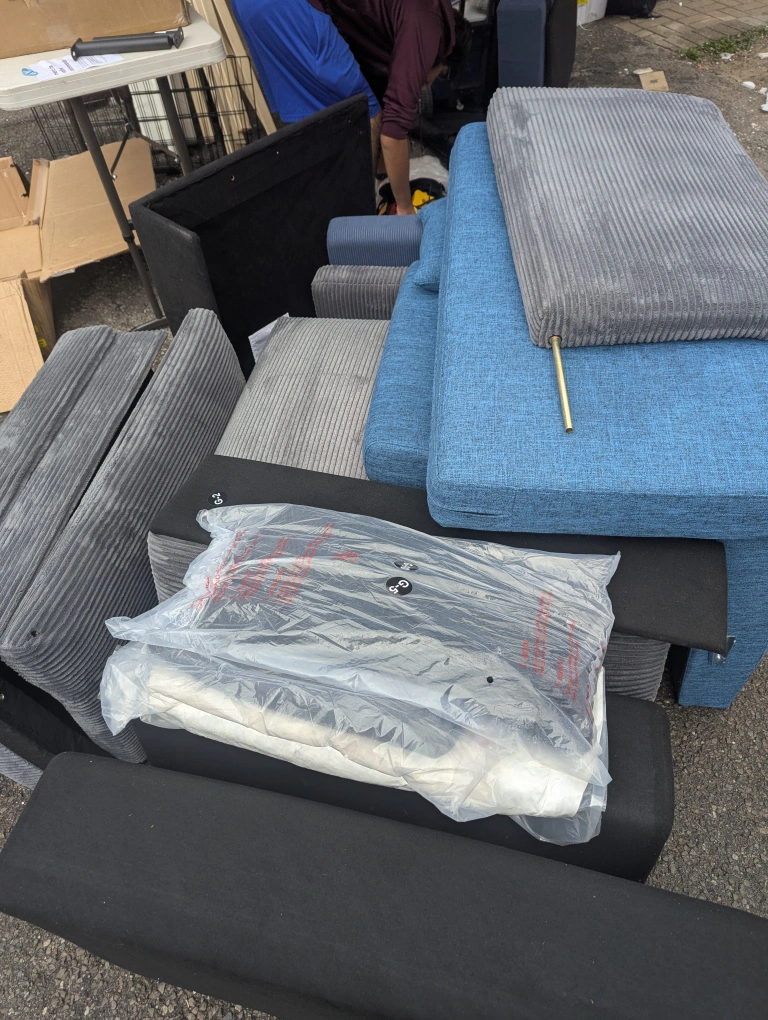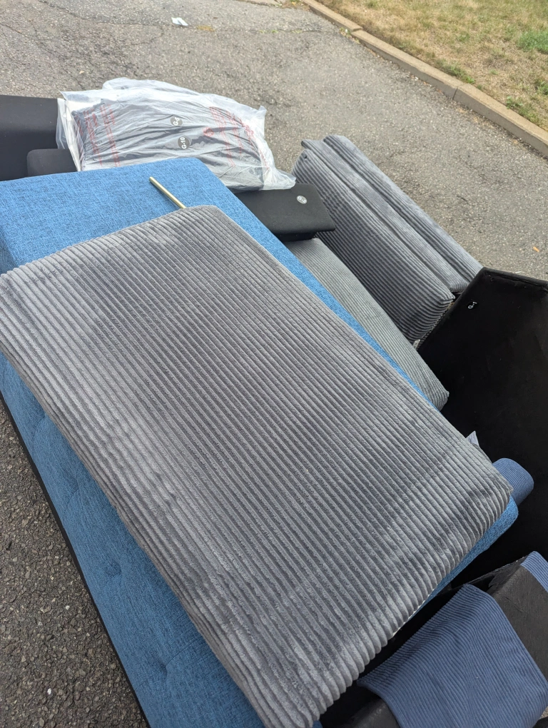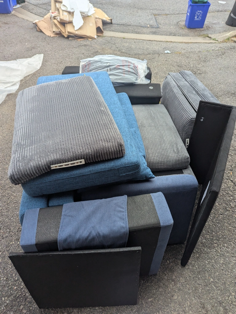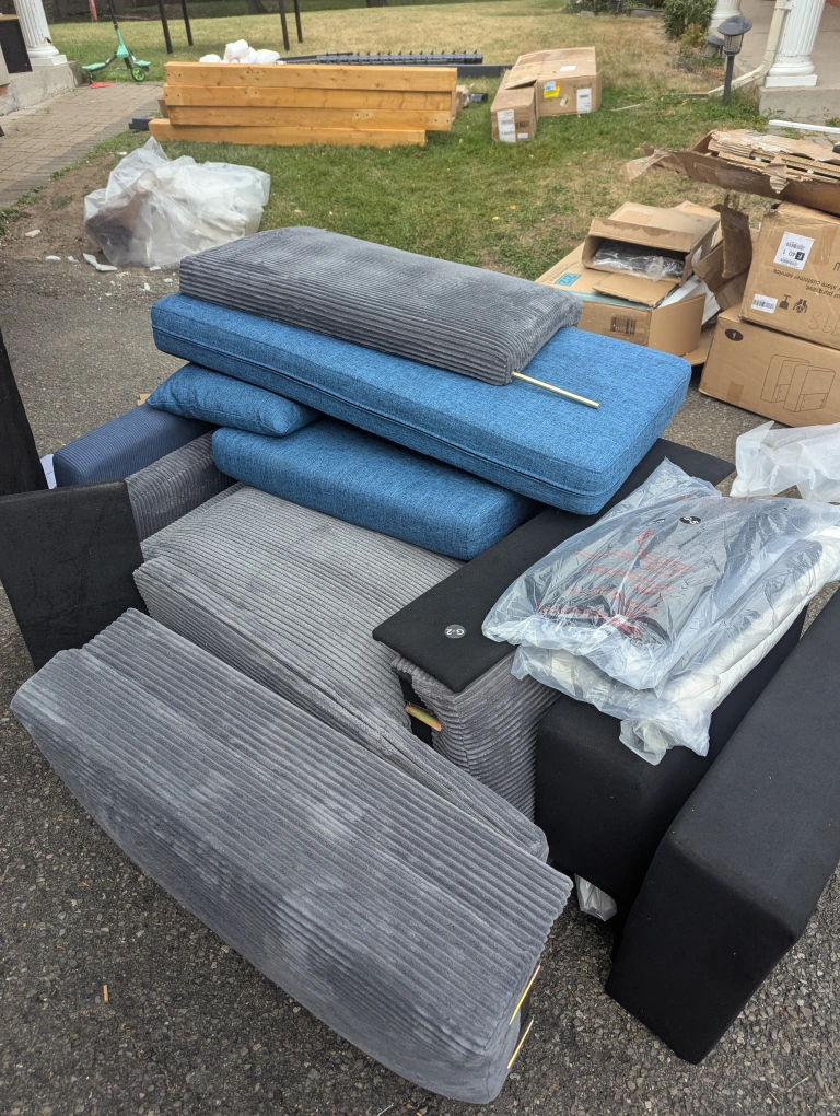 60Selling a collection of modular couch cushions and frames in various colours: blue, grey, and black. None of them are a full set, just looking for someone to take them off my hands who has better use for them