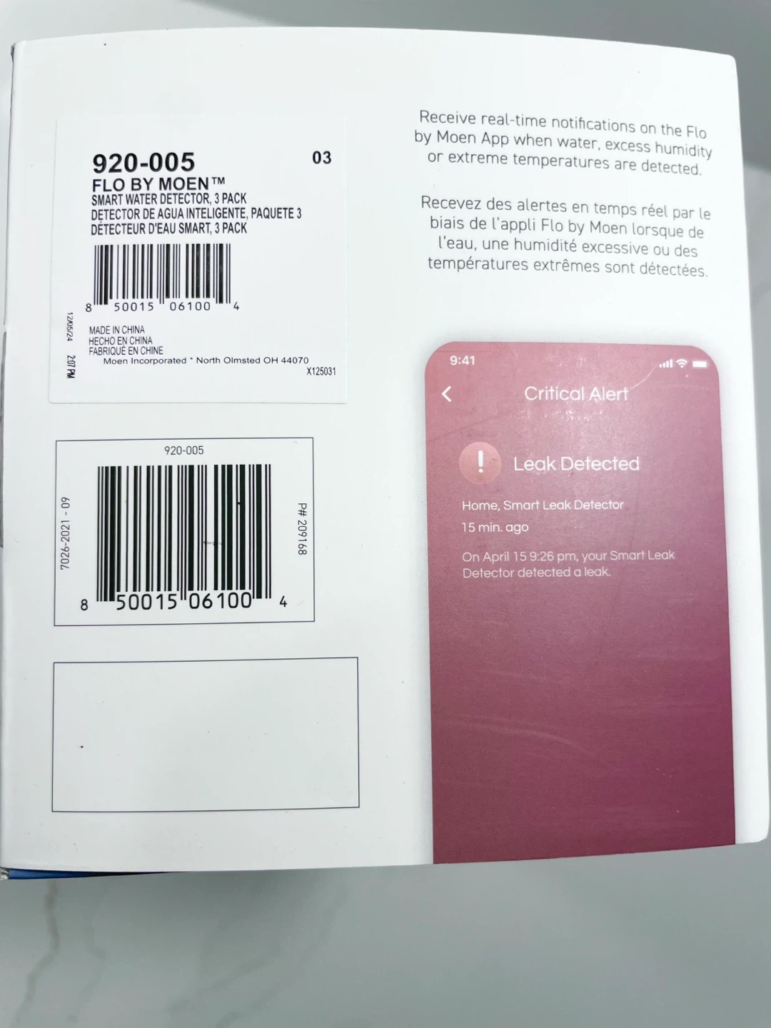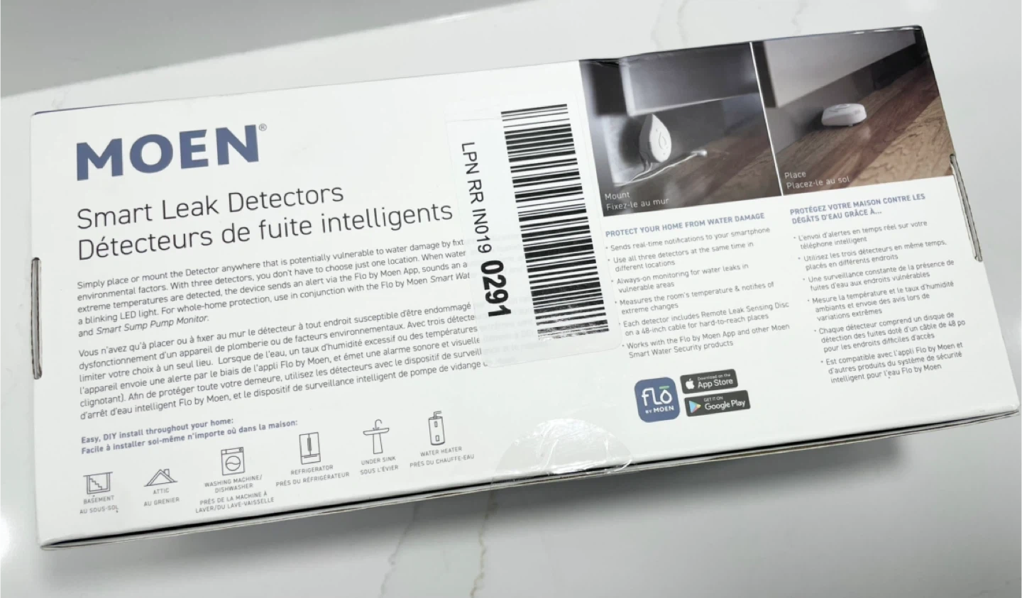 Show allMoen Flo Smart Water Leak Detectors (3 Pack), Sealed Box.