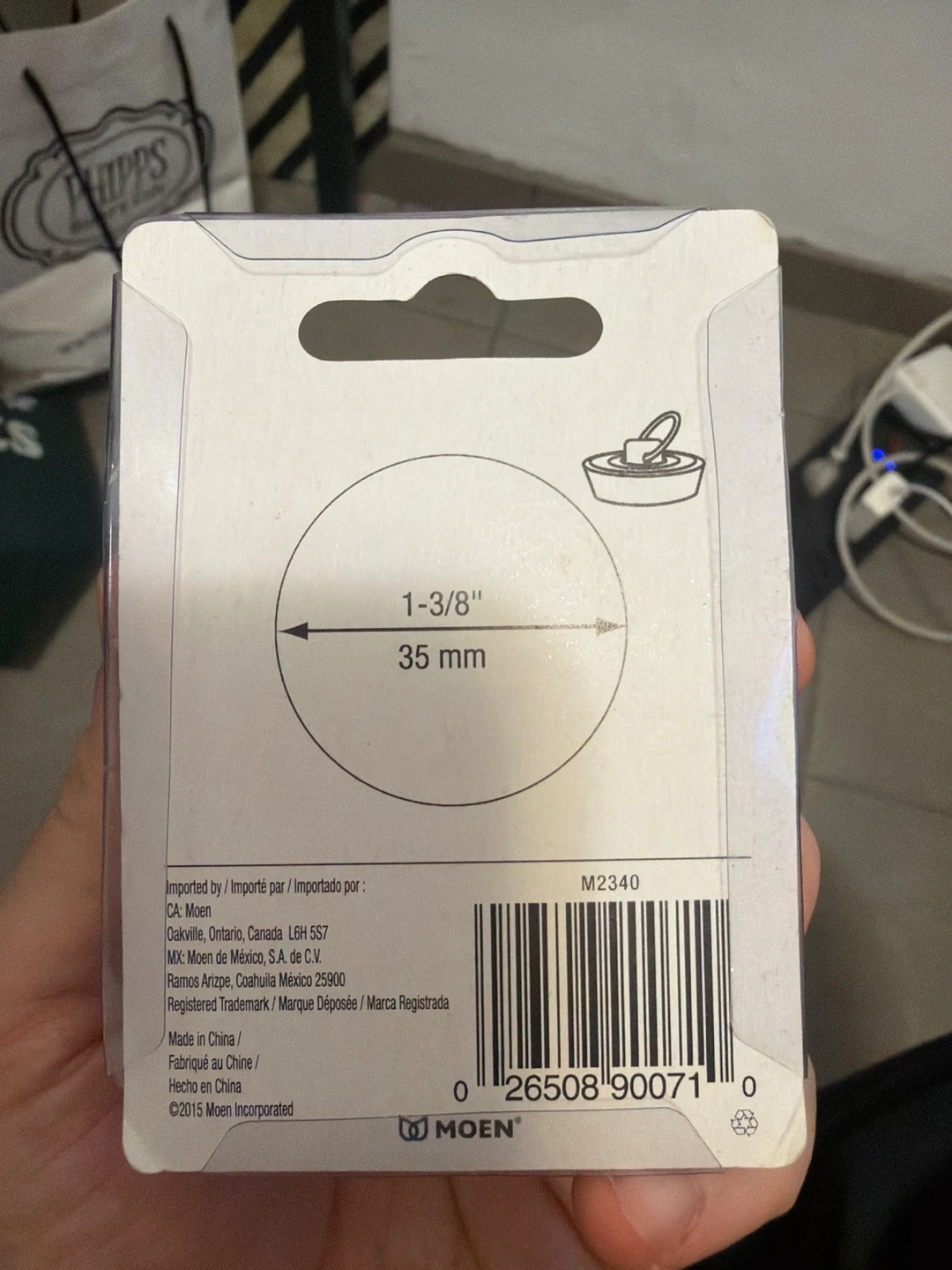 47I'm selling a brand new Moen sink stopper, still in its original packaging! It's sized at 1 3/8 inches, which is about 35mm. Perfect for your sink! Pick up near St. George and Bloor