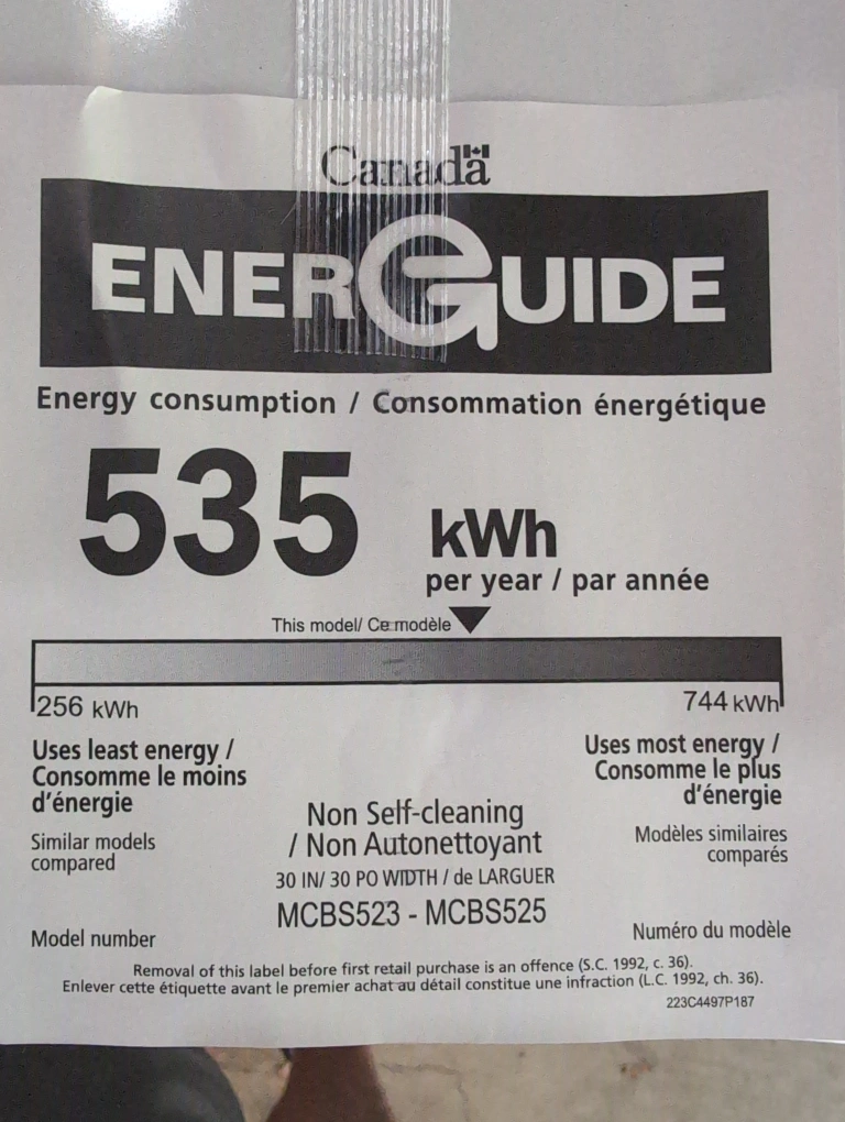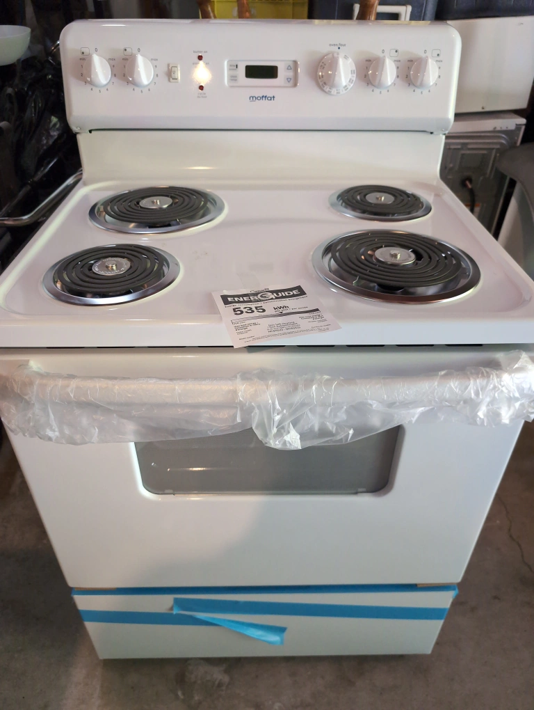 Selling a Moffat electric range, model number MCBS523 - MCBS525. It's in great shape and ready for a new home! It's a non self-cleaning model with an EnergyGuide rating of 535 kWh per year. never used
