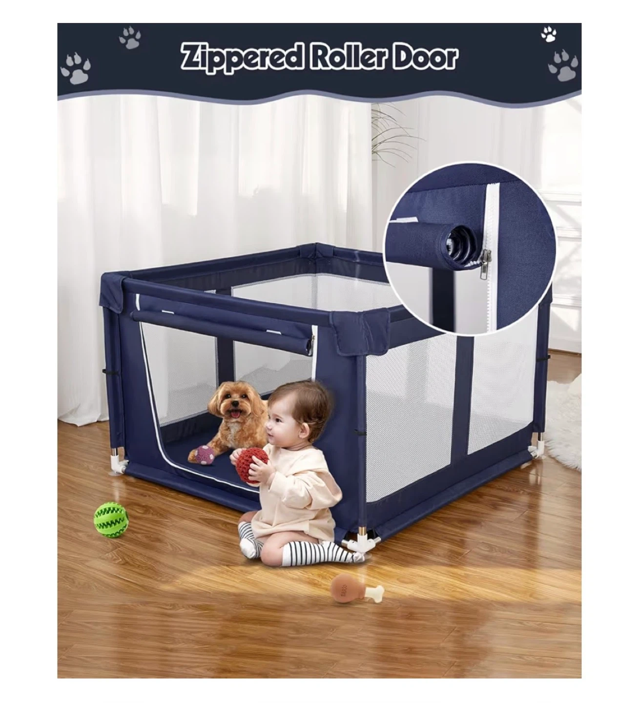 There’s also a built-in gate with a hidden zipper, so you can easily access your pet while still keeping the enclosure secure and preventing curious pups from figuring out how to get out.