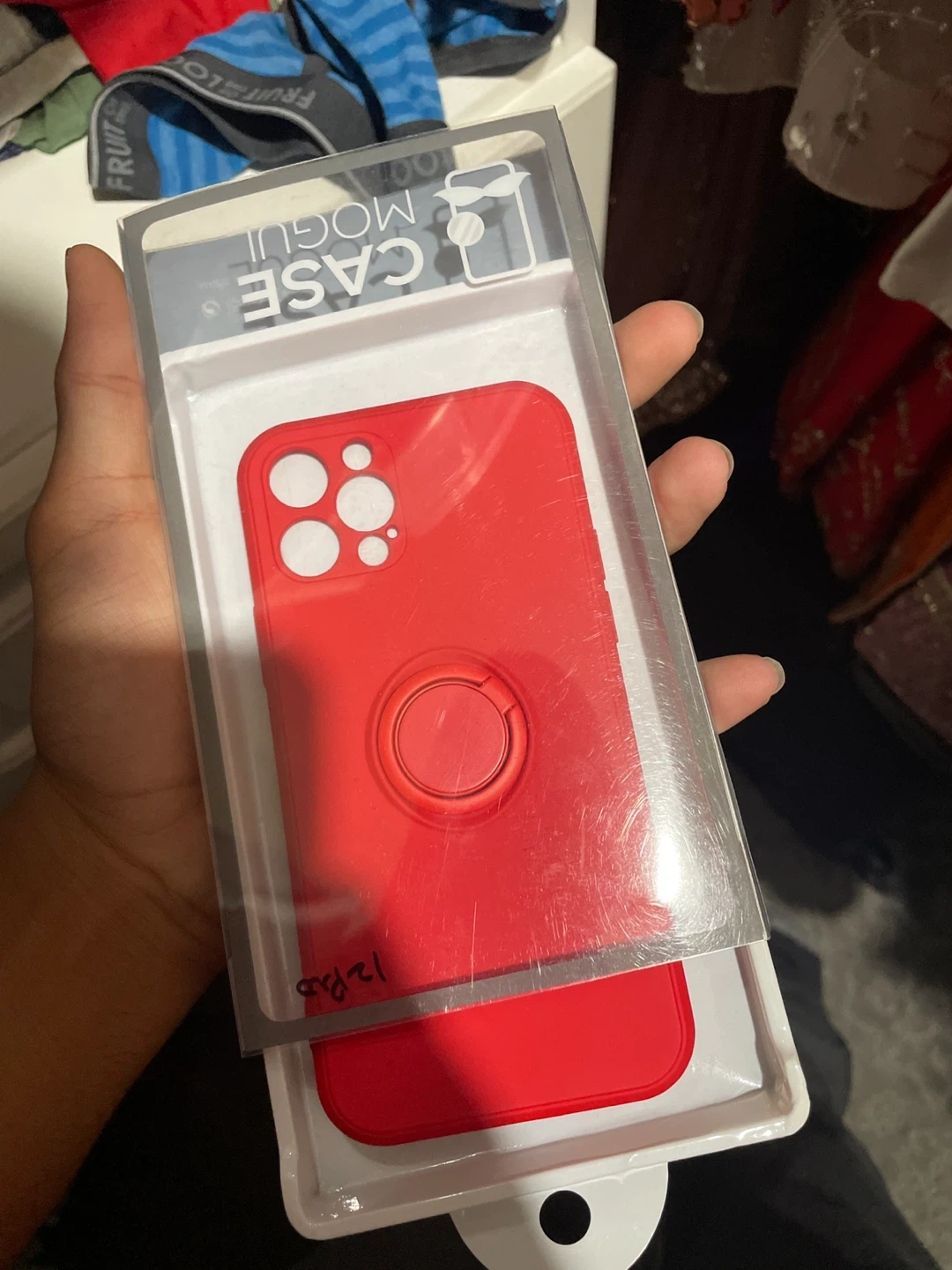 Selling a brand new Mogui case for an iPhone 12 Pro. It's still in its original packaging and has never been used. The case is a vibrant red colour and includes a built-in ring stand for easy grip and viewing