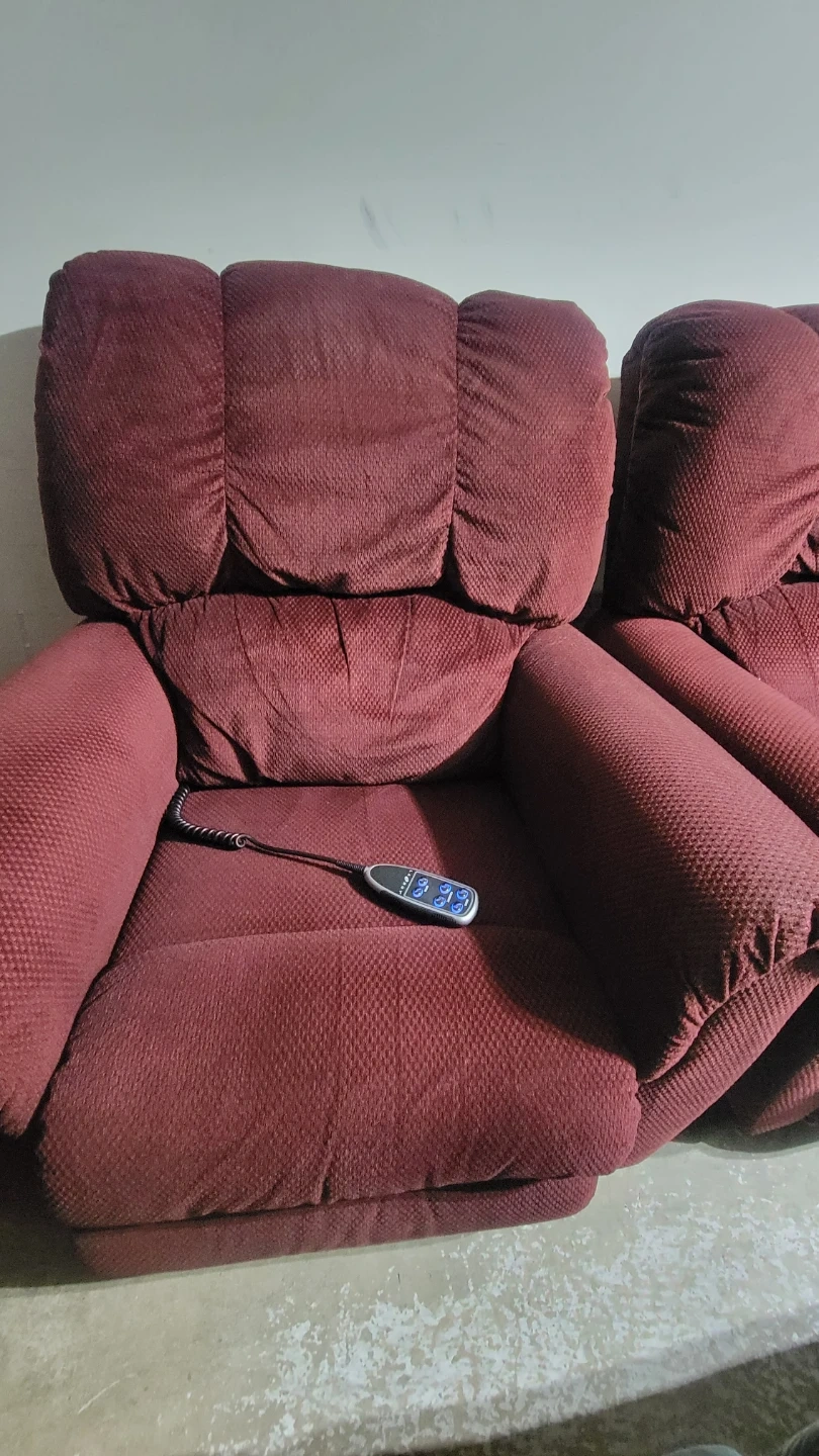 Selling 2 x Burgundy Colored Cloth LaZBoy Brand Electronic Rocker Recliners in Excellent Clean Condition.