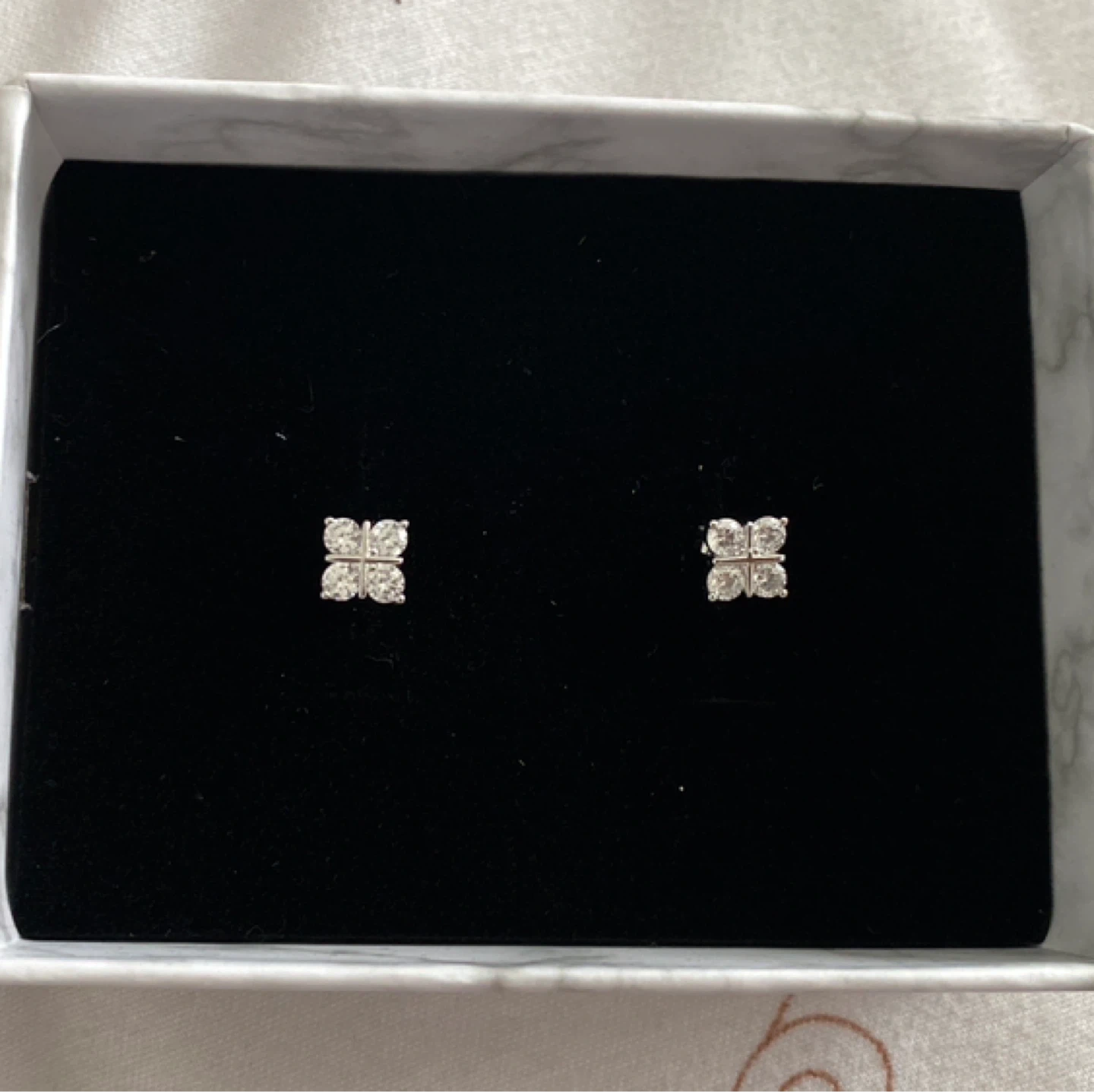 Selling a pair of silver flower stud earrings. They come in a box and are in great condition!