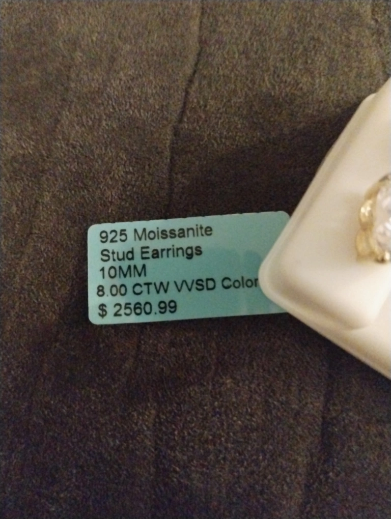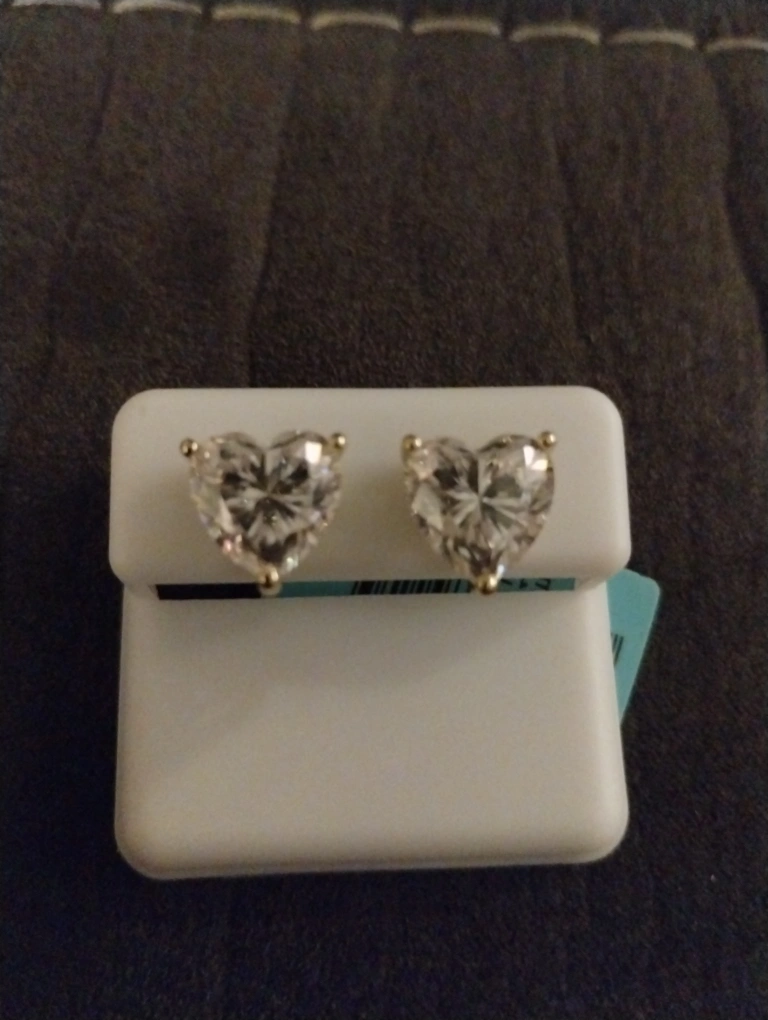 Selling a pair of beautiful 925 Moissanite stud earrings in a heart shape. They are 10mm in size and have 8.00 CTW with VVS Diamond Colour. They are in excellent condition! Originally bought for $2560.99