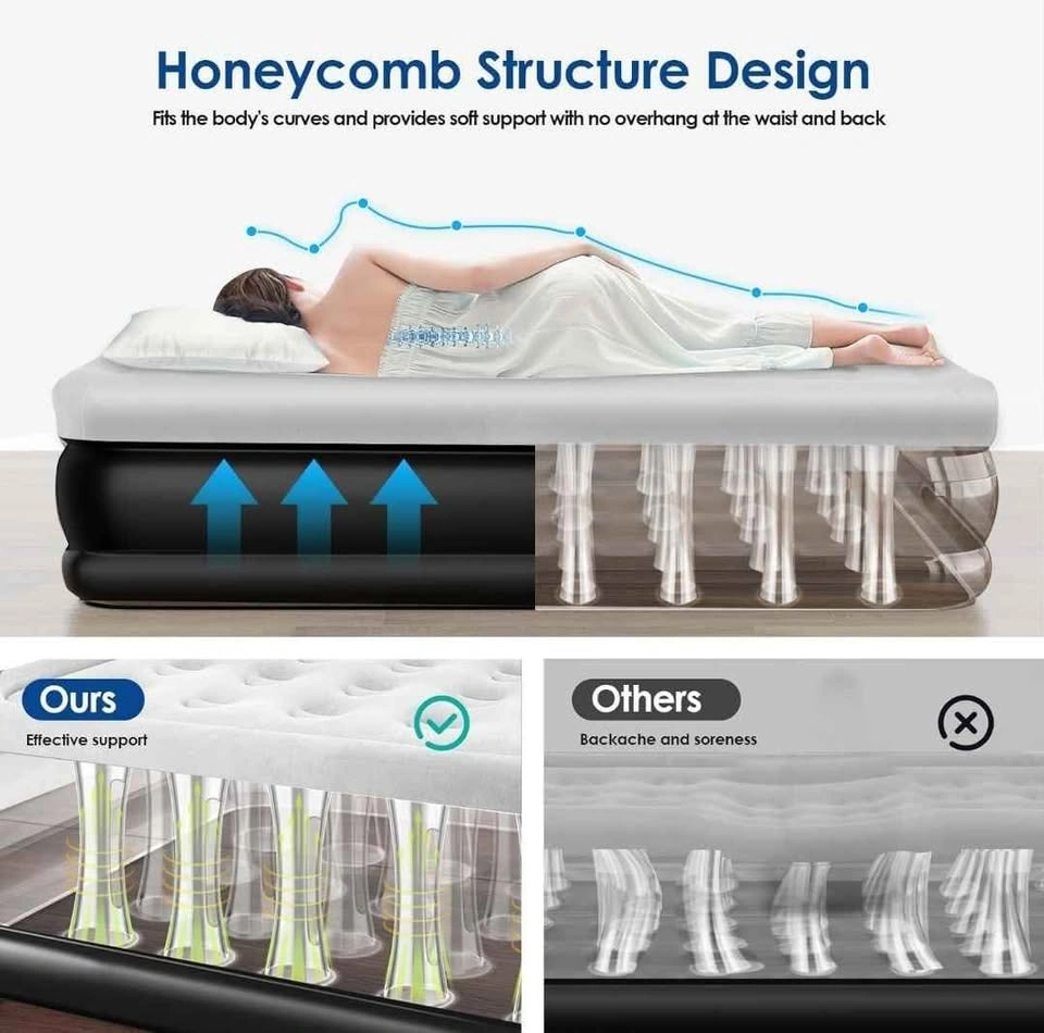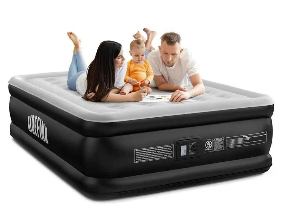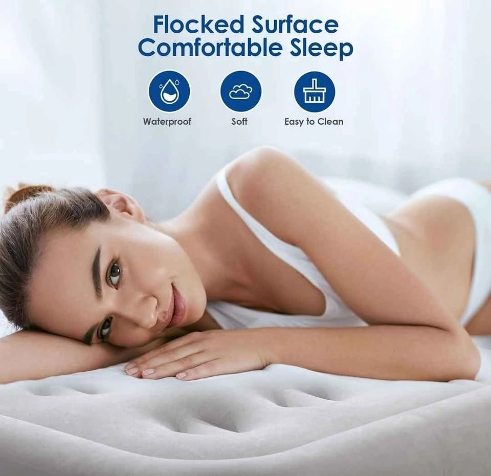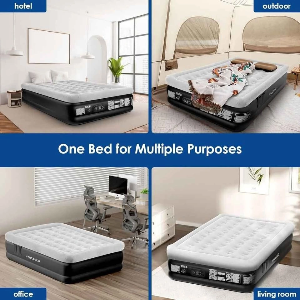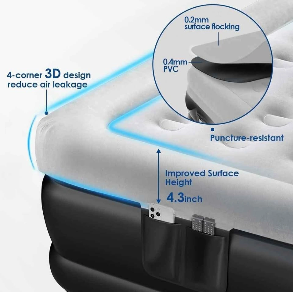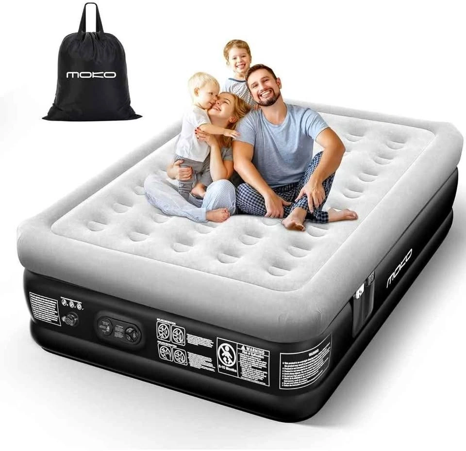 MoKo Air Mattress Queen with Built in Pump, 18'' Luxury Inflatable Mattress, 3 Min Fast Blow up Mattress, Comfort Top - Velvety Air Bed for Home, Camping, Travel, Guests, Black/Gray