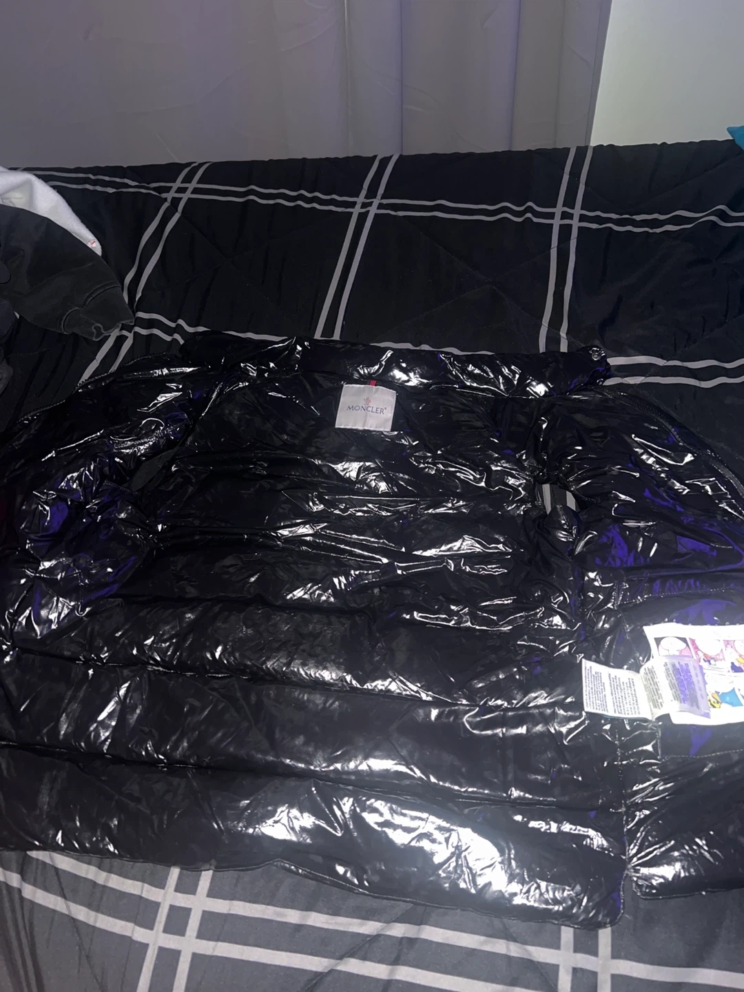 15Selling a gently used Moncler puffer jacket in black. It's in great condition and ready to keep you warm this winter! The jacket features the classic Moncler logo and a stylish, glossy finish.