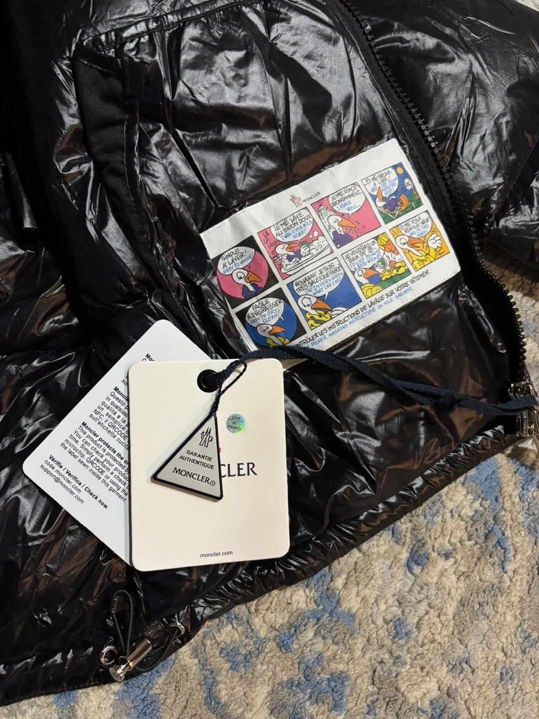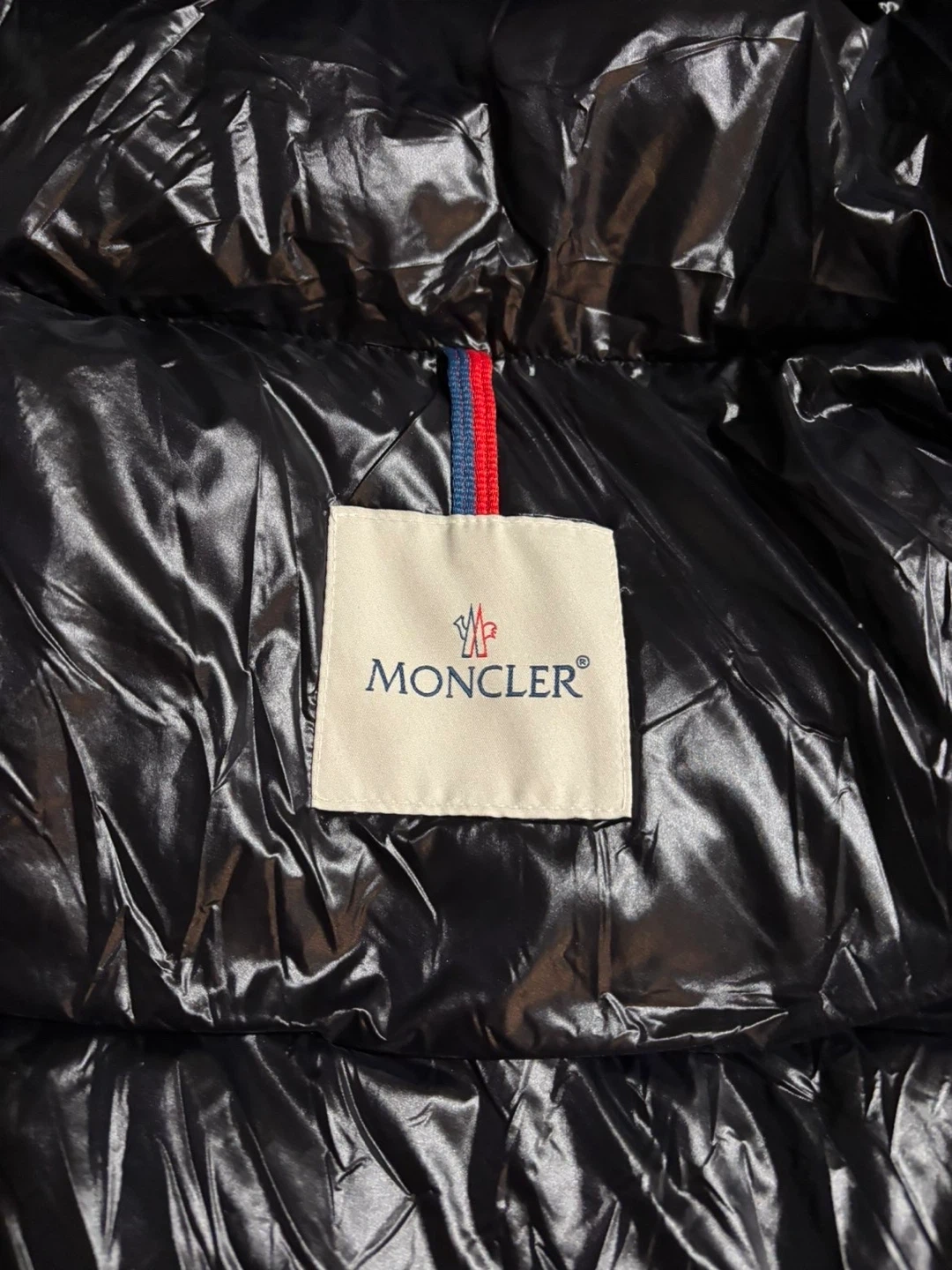 Selling a stylish black Moncler puffer jacket! It's in great condition and comes with its original packaging. Perfect for staying warm during the colder months!