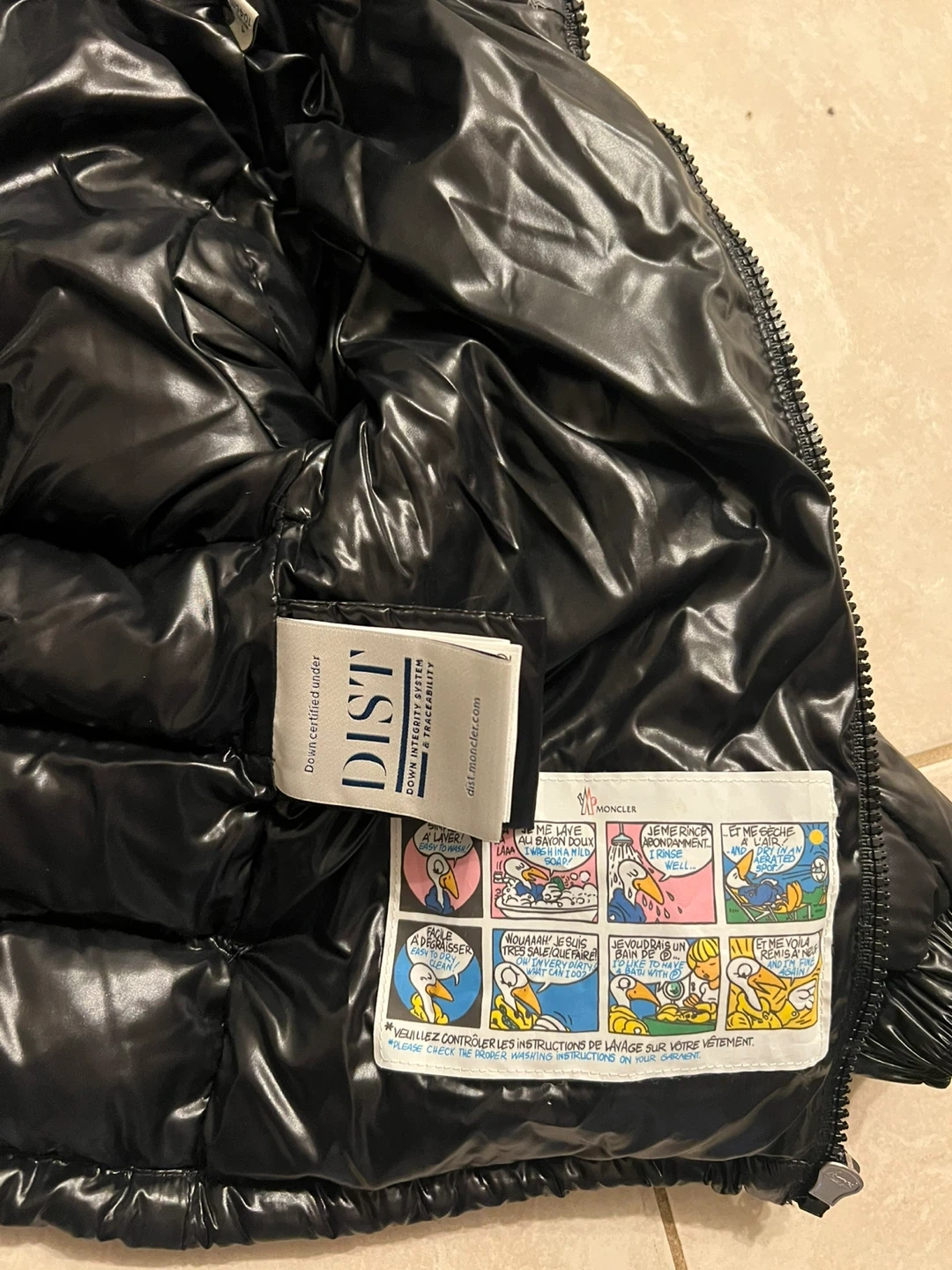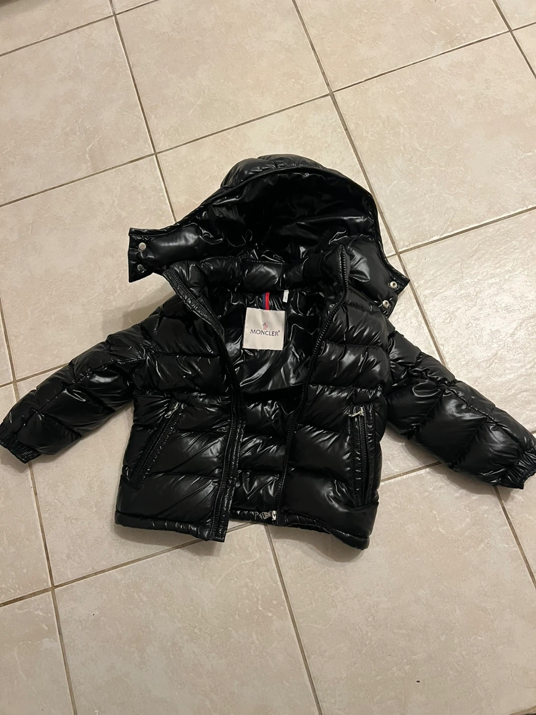 Selling a brand new Moncler puffer jacket in black size 4 in toddler. It's in great condition and perfect for keeping your little one warm during the colder months. The jacket features a classic Moncler design with a glossy finish and a comfortable fit. A stylish and functional addition to any child's wardrobe! Purchased from sporting life. Have receipt as well.