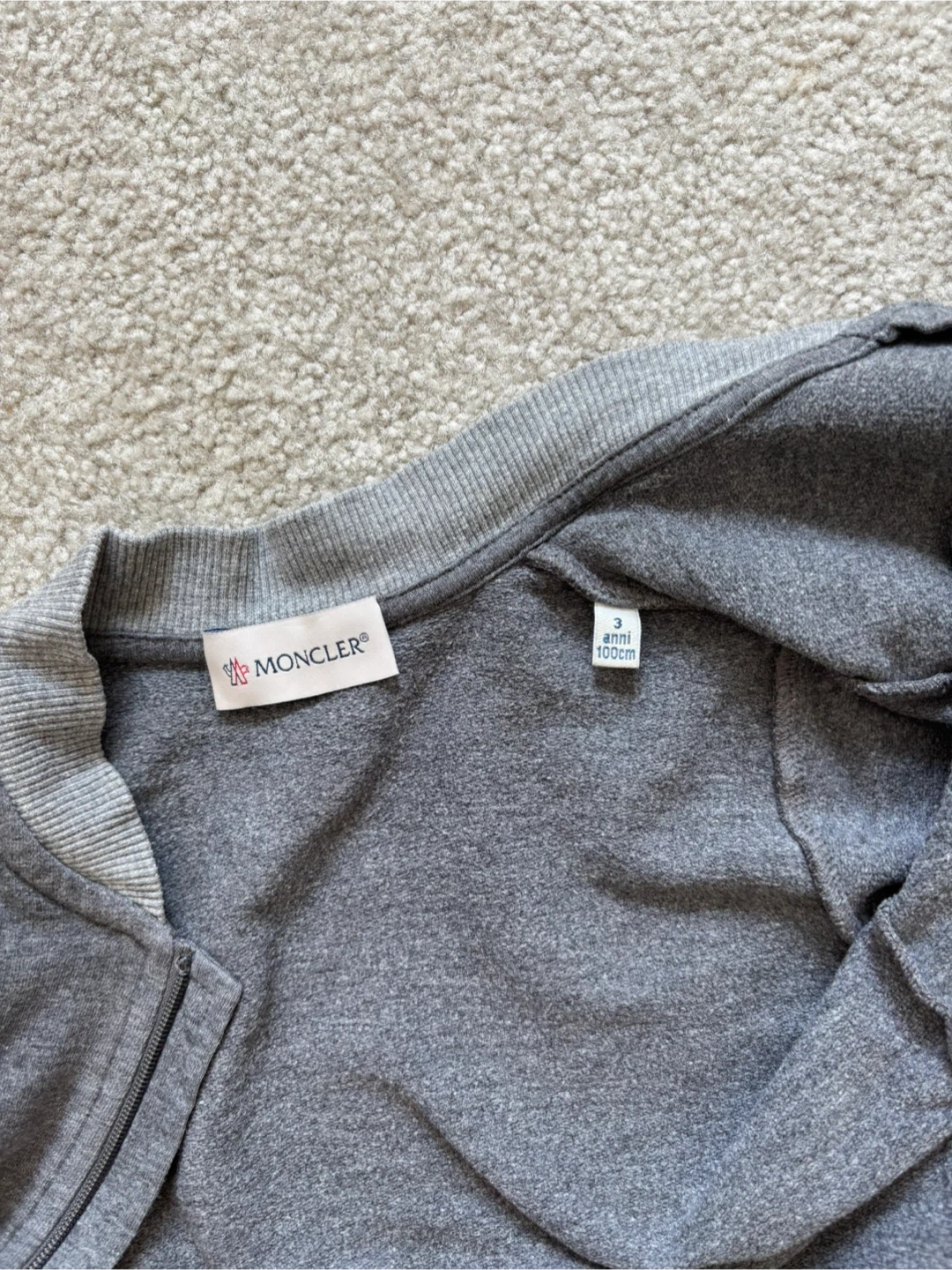 Selling a Moncler kids tracksuit in size 3 anni / 100cm. It's a stylish and comfortable set for your little one!
