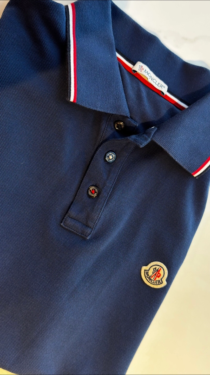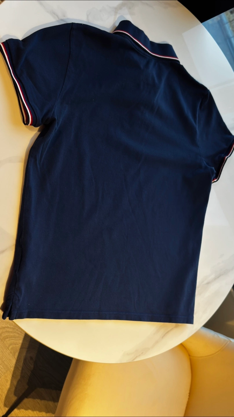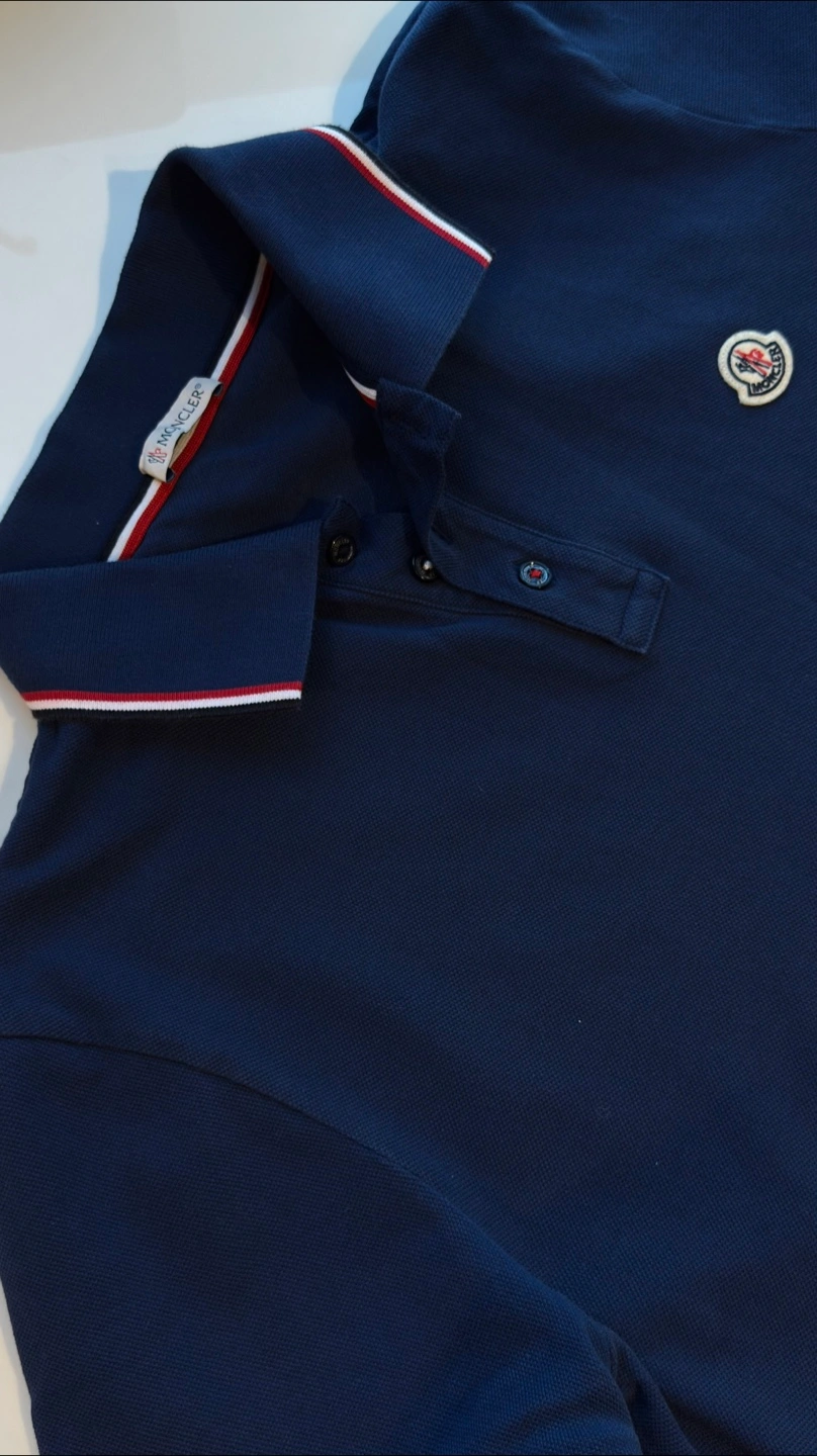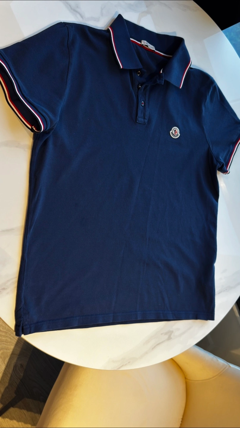 368Selling a Moncler Maglia polo shirt in navy blue! It's in great condition and features the classic Moncler logo on the chest. Perfect for a casual yet stylish look. Please note that the T-shirt is size L, but it fits more like a size M. There are a few small spots, which is why the price is so good.