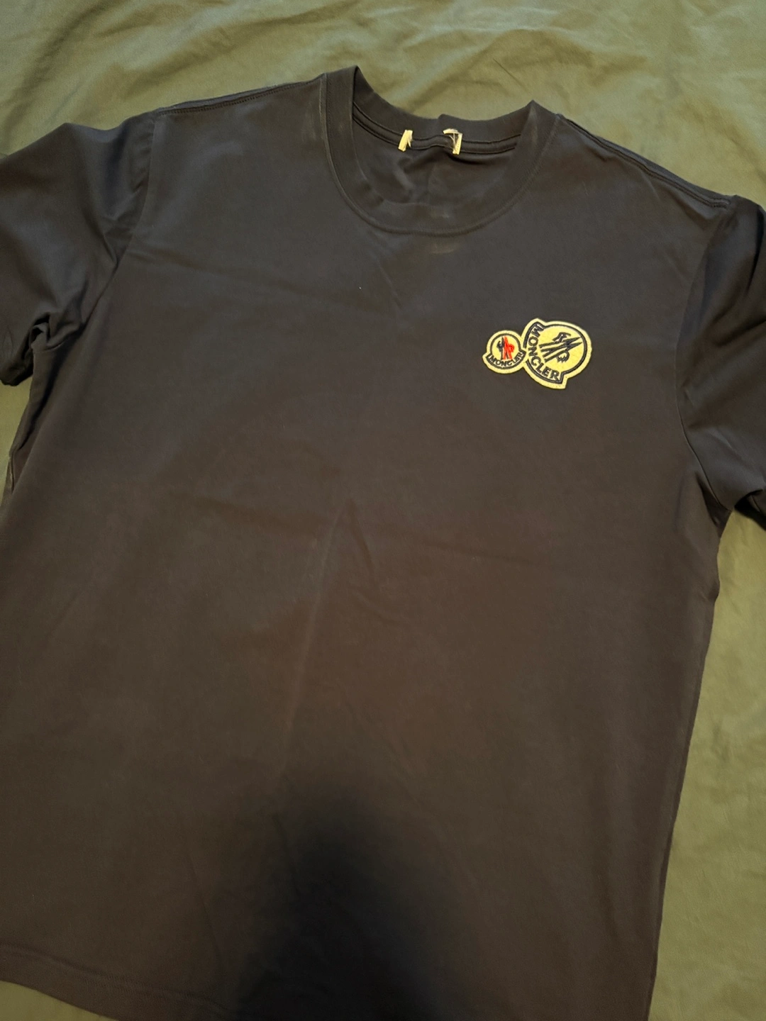 65Selling a Moncler navy t-shirt. The material feels really nice and it has the double Moncler logo on the chest! Size is L & muscle fit