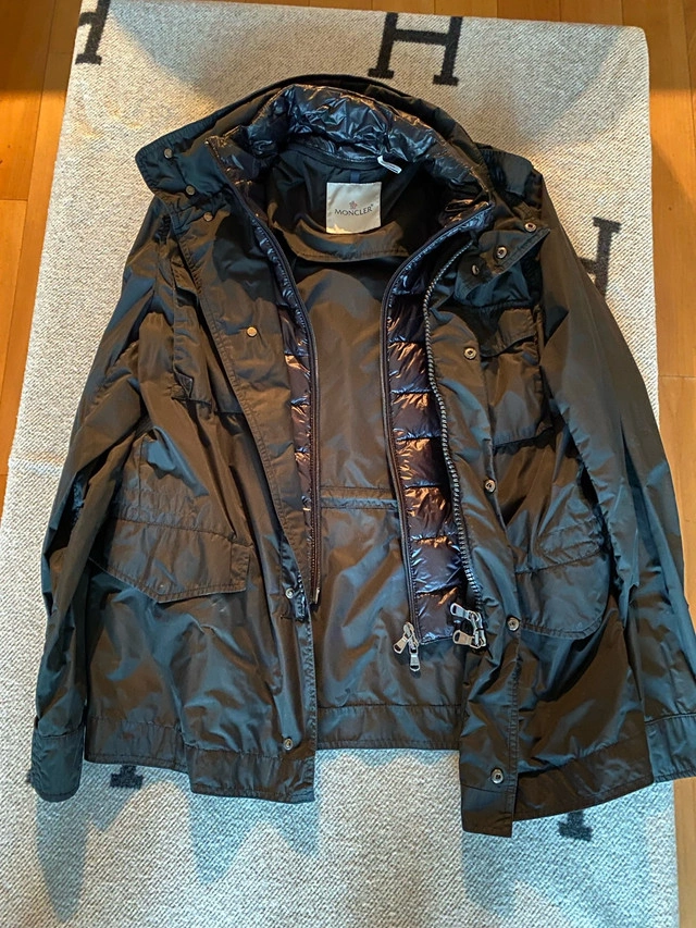 66This Moncler nylon parka in black, size 3, is a stylish and functional outerwear piece. It features a durable nylon construction with a quilted lining for added warmth, making it ideal for transitioning between seasons. The jacket includes a detachable hood, multiple pockets for convenience, and signature Moncler detailing. The jacket is in excellent condition. Features: - Brand: Moncler - Material: Nylon - Colour: Black - Size: 3 (Medium) - Detachable hood - Multiple pockets I am asking $300, which is within the range of similar Moncler jackets sold on Kijiji. If the ad is up, it's available!