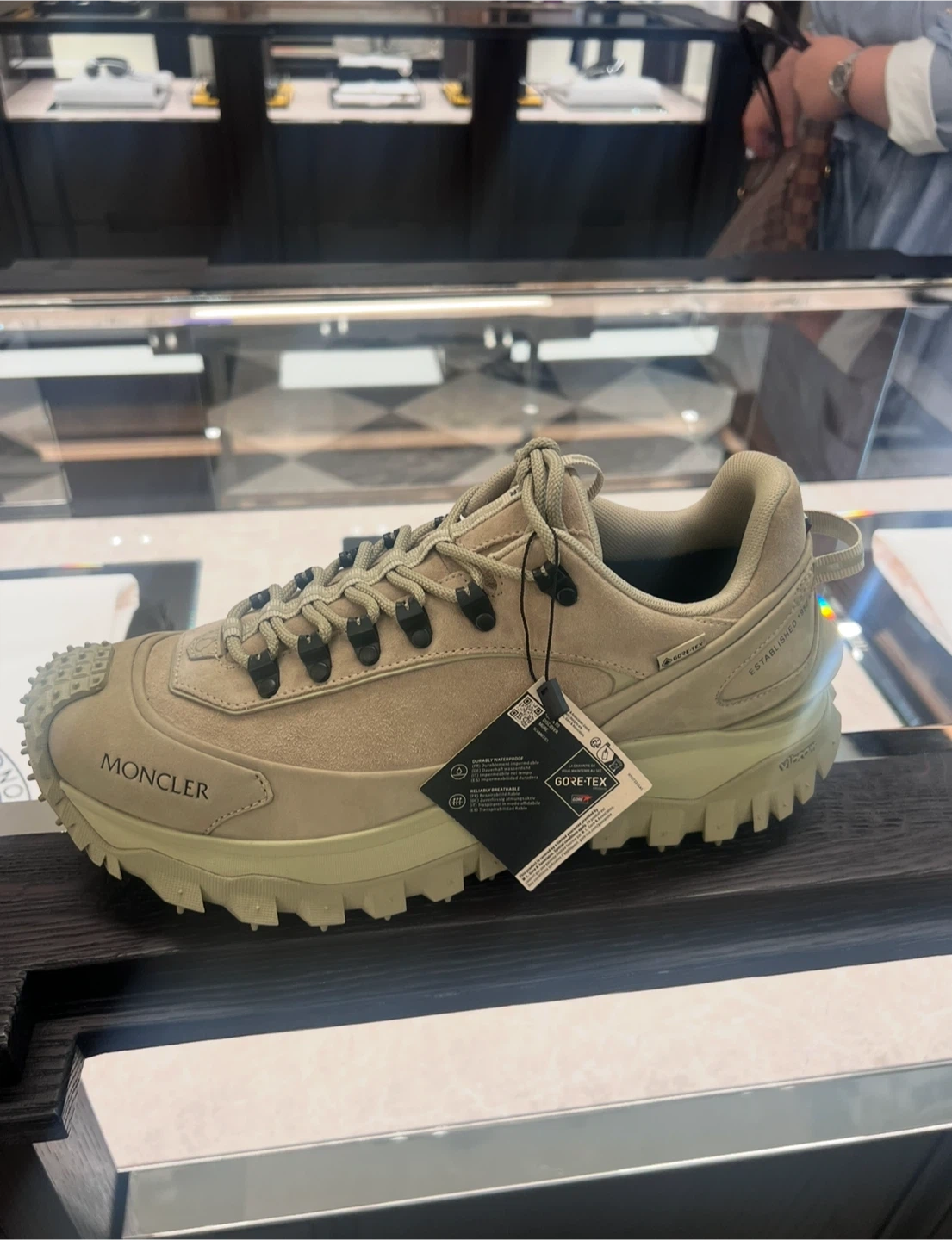 0Selling a pair of Moncler Trailgrip GORE-TEX sneakers. These are a stylish and durable choice for outdoor activities or everyday wear. The GORE-TEX lining ensures your feet stay dry and comfortable. They have a rugged sole for great traction!
