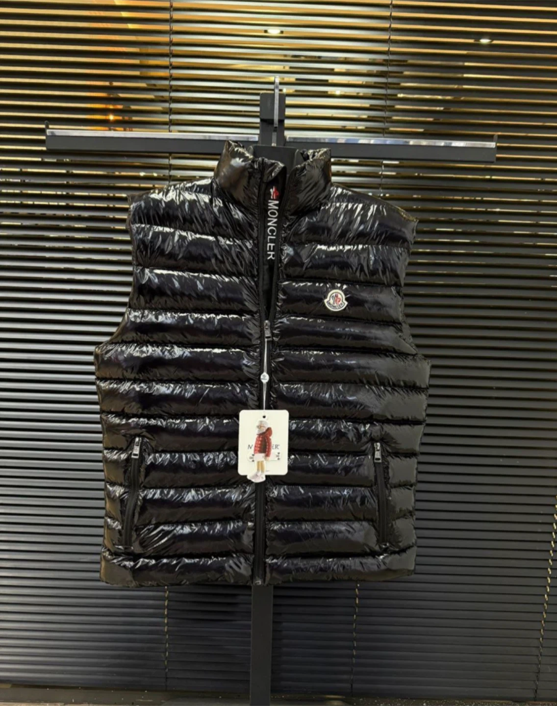 Selling a Moncler down padded vest in black. It's in great condition and perfect for layering during the colder months. Features a full zip closure and the classic Moncler logo on the chest. A stylish and functional addition to any wardrobe!