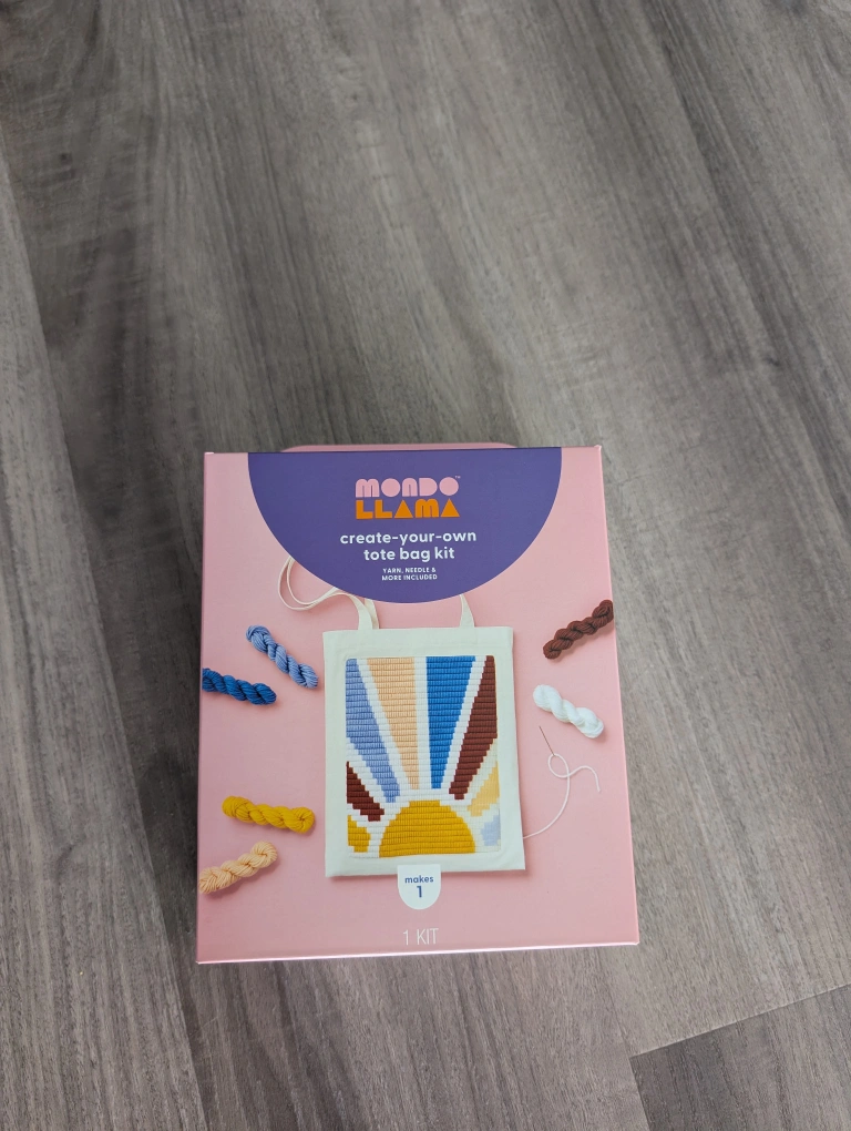 0I'm selling a brand new Mondo Llama Create-Your-Own Tote Bag Kit! It includes 6 rolls of yarn, a stitching needle, a canvas tote, and an instruction sheet. Add your handmade tote to your wardrobe! picked these up for a craft night and have extra left over