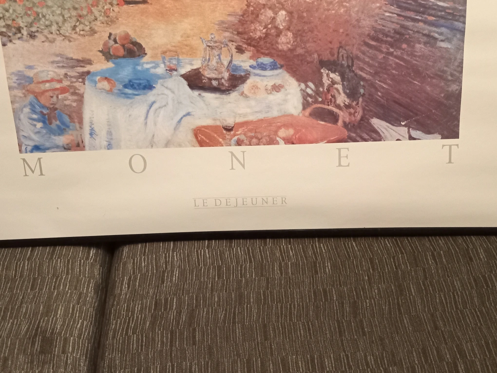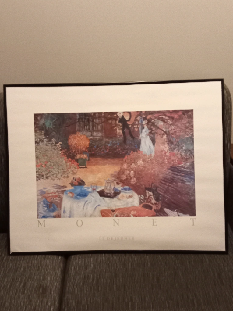 28 inches across and 22 inches from top to bottom. Pick up or mert up in public place. Cash only. Willing to bargain with price.Monet Le Dejeuner Painting (Print)