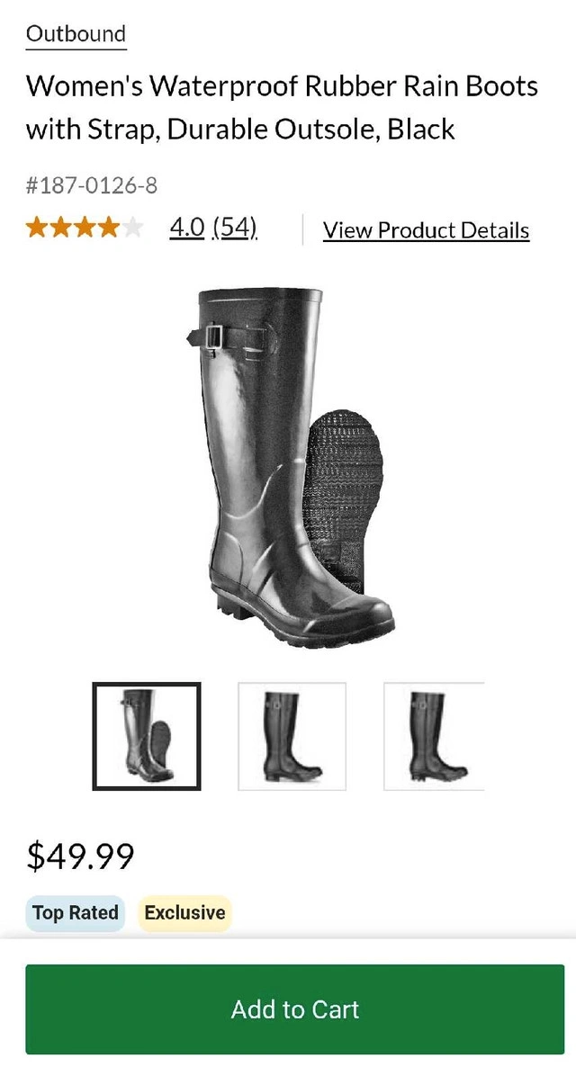 Moneysworth & Best Ladies Size 6 Rubber Boots