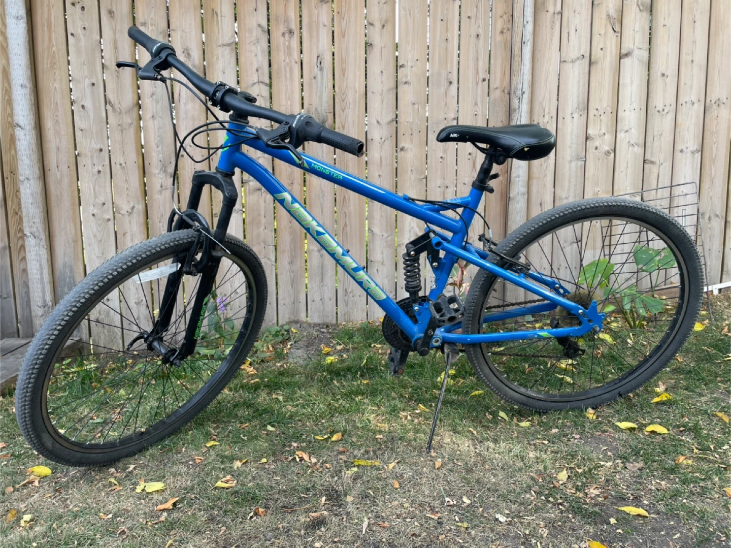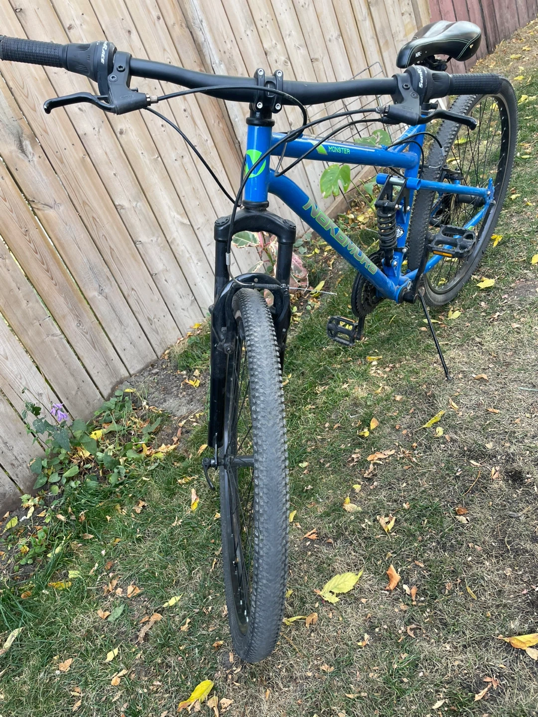 Selling a Mongoose Monster mountain bike. It's blue and ready for some trails or just cruising around the neighbourhood. Great for someone looking for a reliable ride!