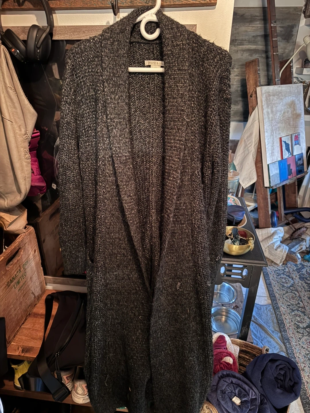81Cozy Monk & Lou cardigan in a lovely grey knit! It's a size M/L and would be perfect for layering on chilly days. In great condition!