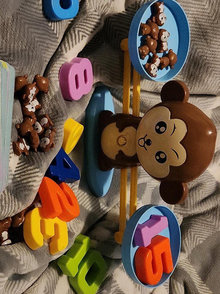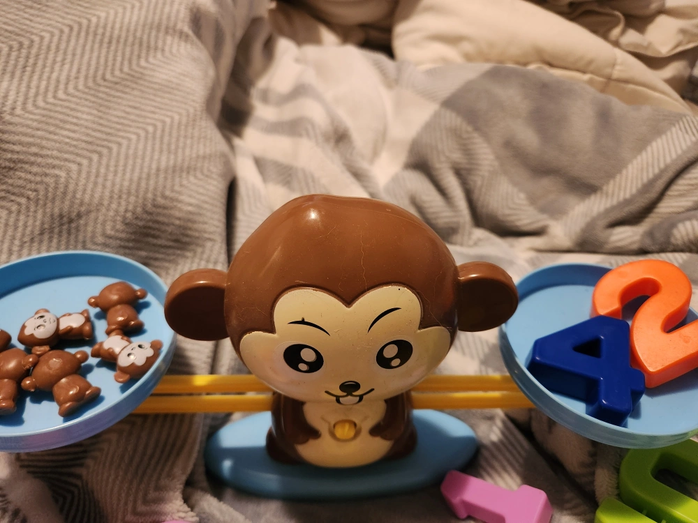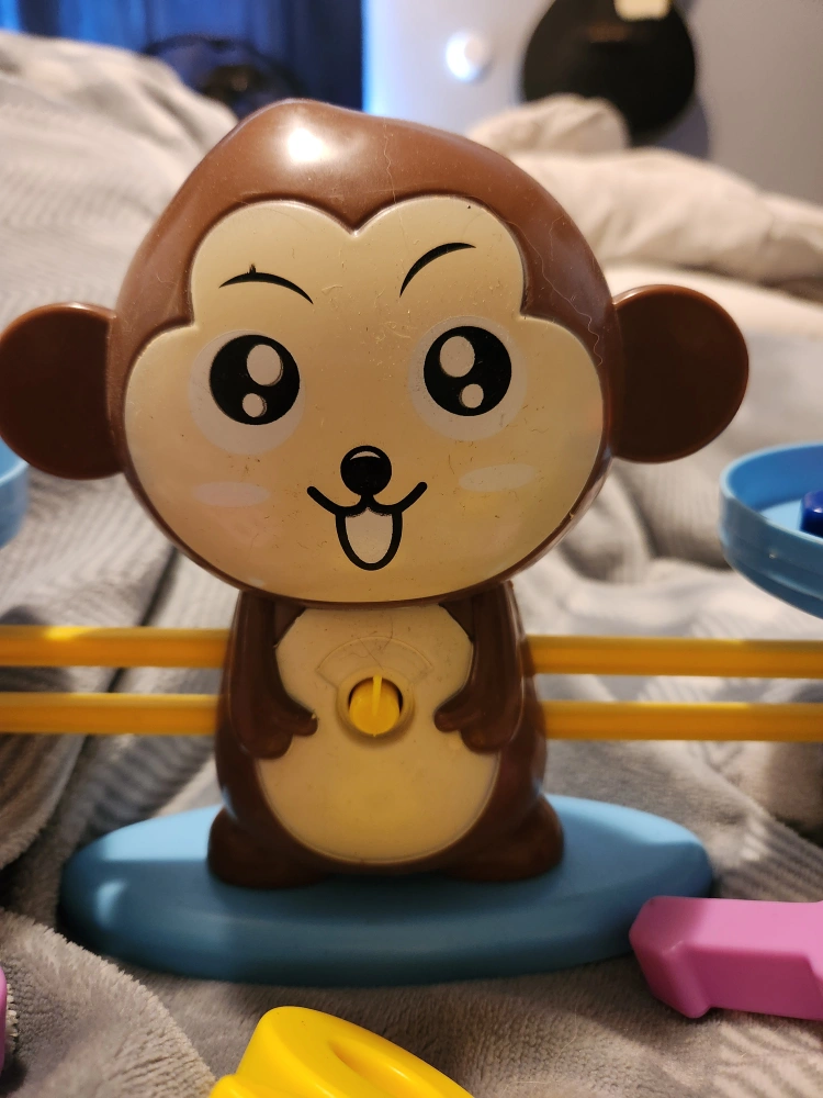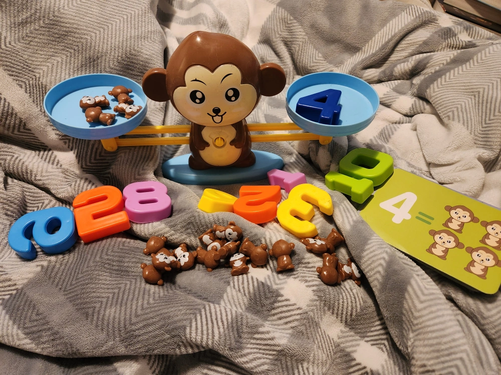 This is a cute monkey balance counting toy. It's a fun and educational way for kids to learn about numbers and basic math concepts. Includes the monkey scale, number blocks, and little monkey weights! Smoke Free Pet Friendly Home. Check my listing for other educational toys!