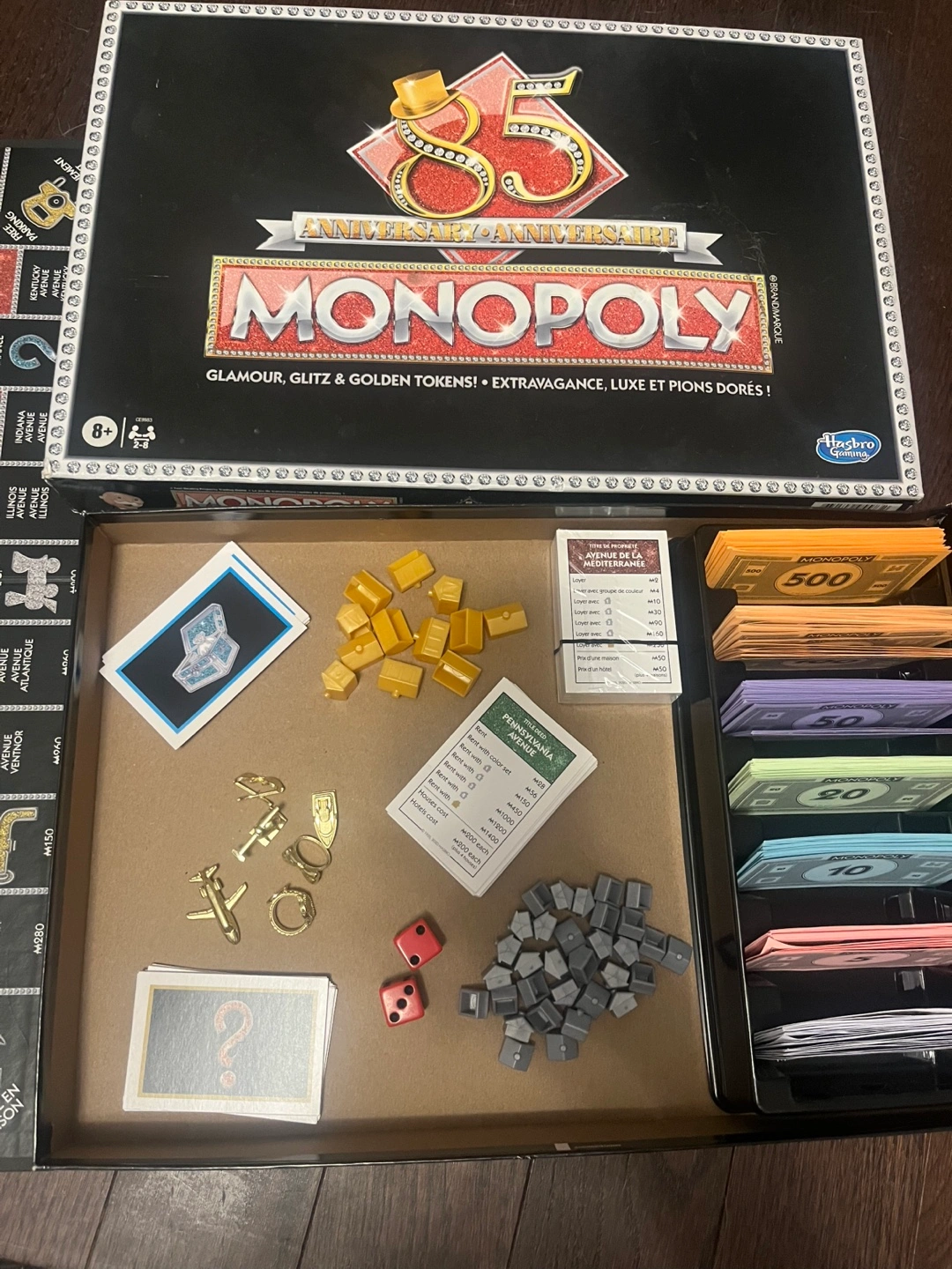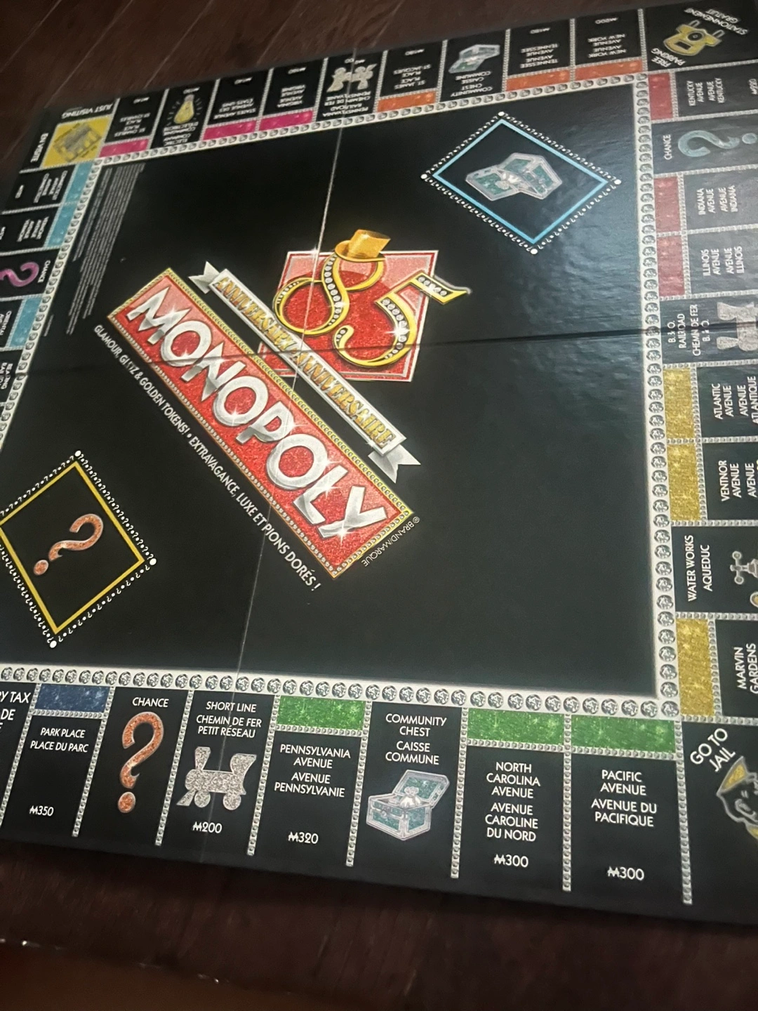 Selling a Monopoly 85th Anniversary Edition board game! It includes: - All original pieces and components - The game board - Cards, tokens, and dice - The original box