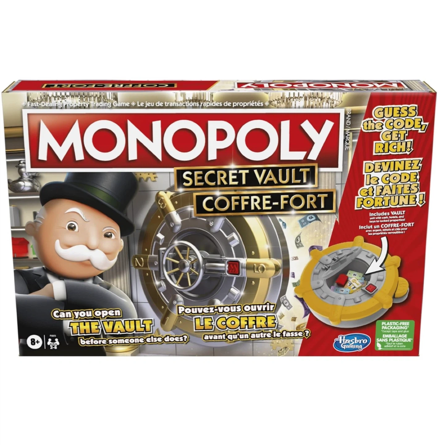 Selling a Monopoly Secret Vault board game! It's a fast-dealing property trading game where you can guess the code and get rich. This includes the vault unit with cash, hotels, and keys to locked properties. Suitable for ages 8+
