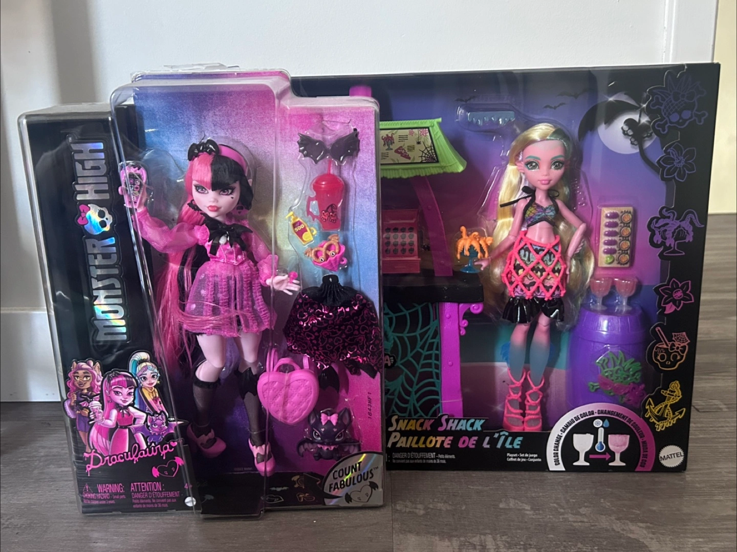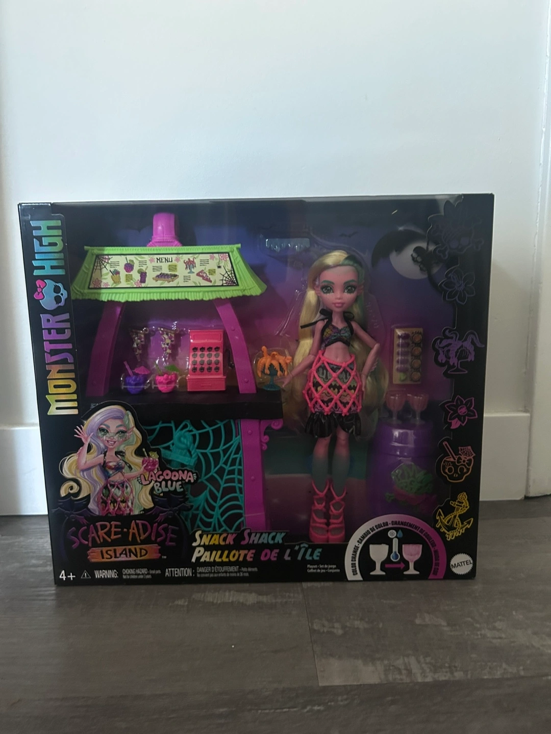 Selling a Monster High Scare-adise Island Snack Shack playset Lagoona Blue! And Draculaura. This set is perfect for any Monster High fan and includes the doll and snack shack accessories. The box is included, so it's great for collectors too. Draculaura - $35 Lagoona - $55 Both - $80