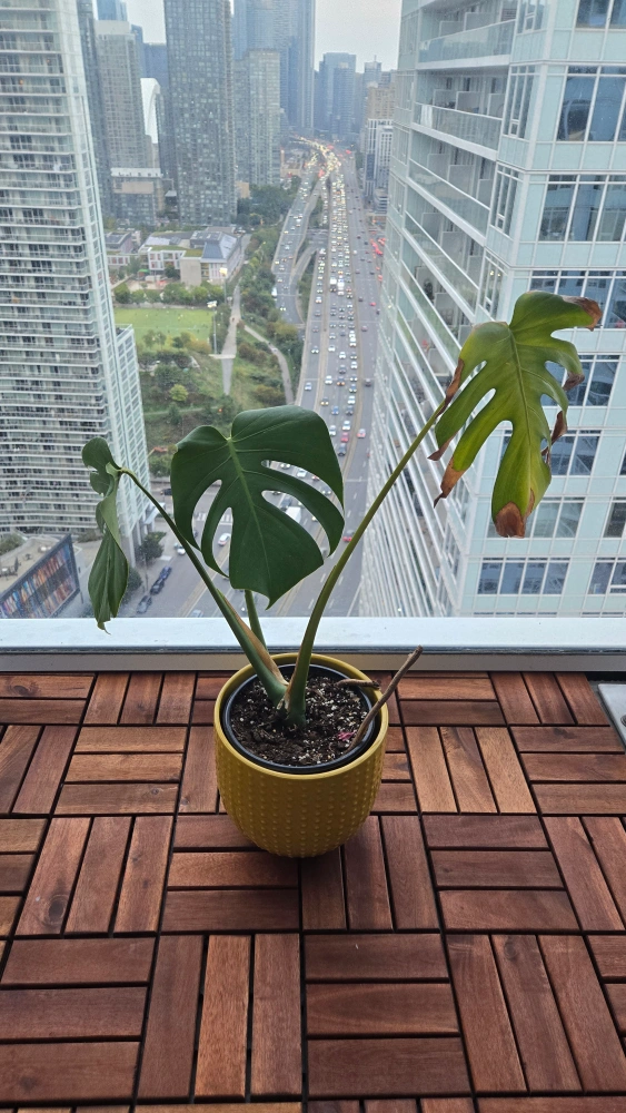 Selling a monstera plant potted in a yellow pot. It would be a great addition to any home!