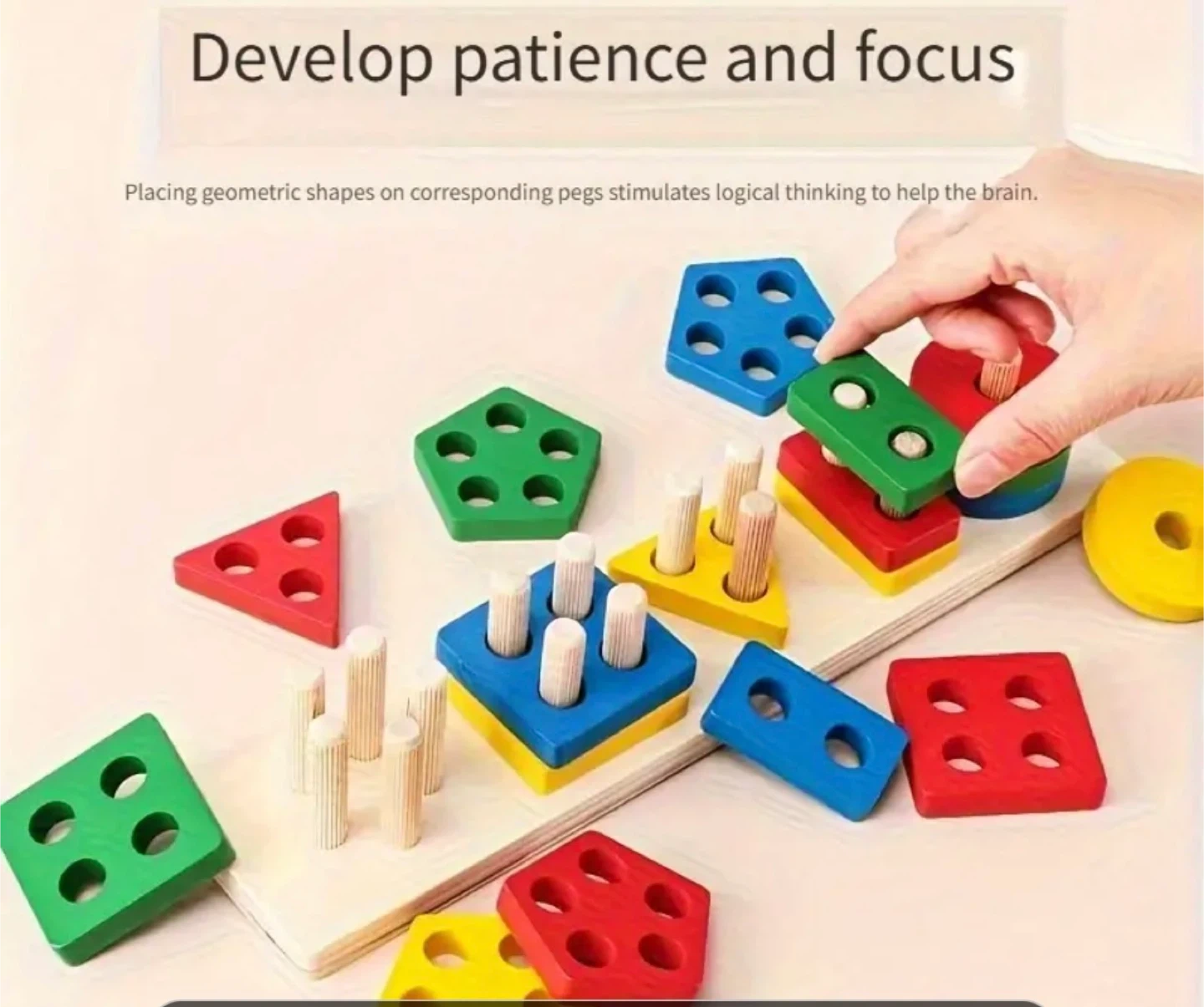 This wooden shape sorter puzzle is great for helping little ones learn shapes and colors! It can help develop patience and focus by placing geometric shapes on corresponding pegs, which stimulates logical thinking