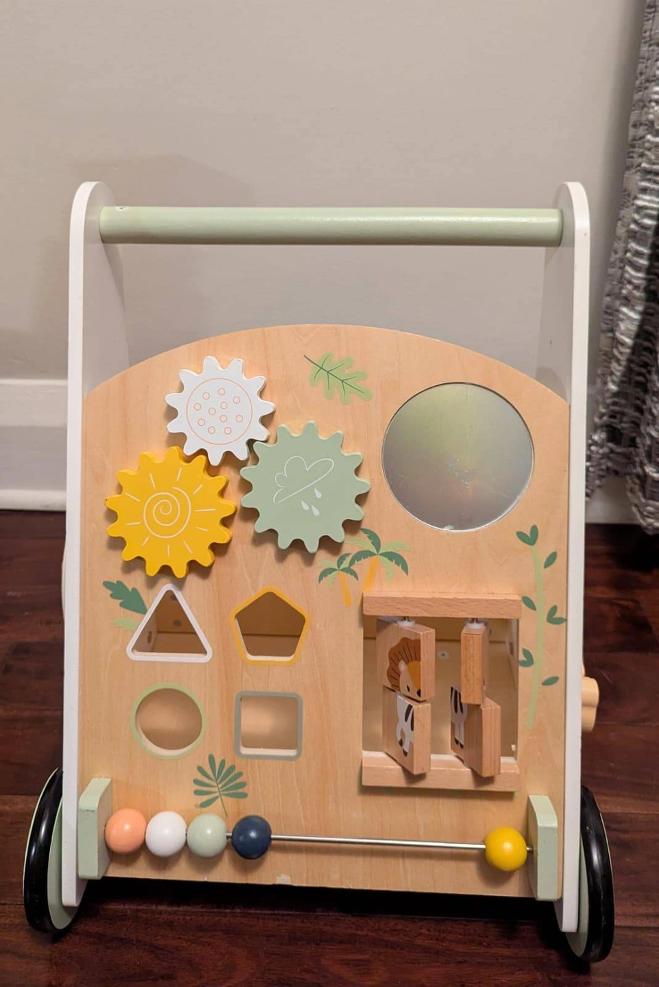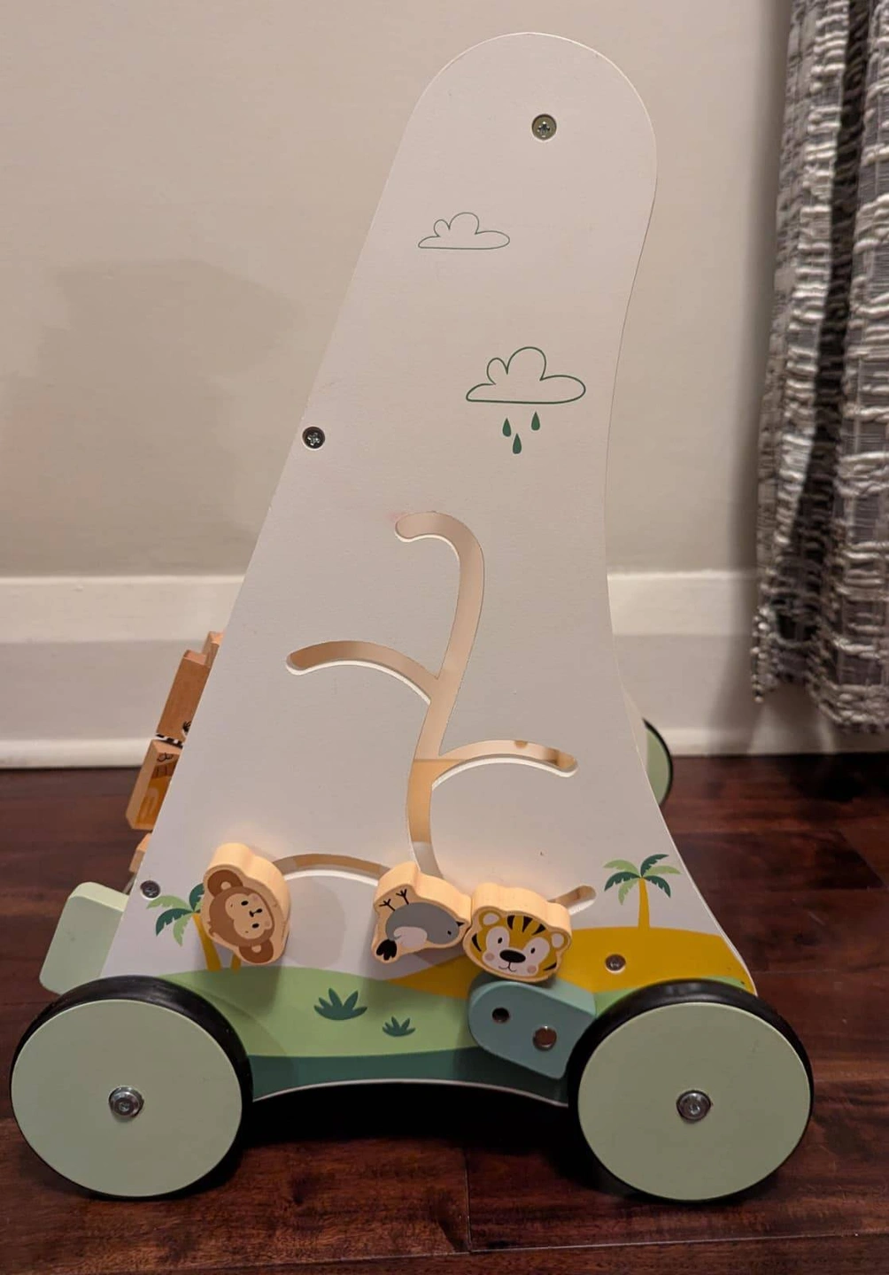 10Wooden Push Walker Adjustable Speed Montessori Walker with Activity Center for Boys, Girls and Toddler Toy for Ages 1-3 **It has a minor damage on the spinning wheel, but rest is like new. See pictures. Pick up: We can meet at "Doce Minho Bakery" 2189 Dufferin St, York, ON M6E 3R9 you see the add, it`s available :)