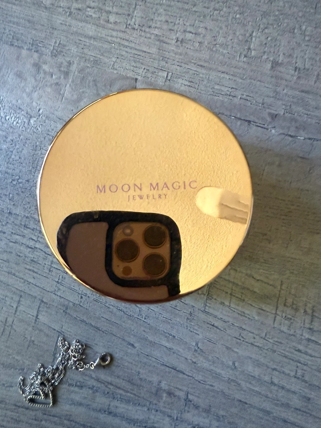 1000+- This is a beautiful Moon Magic necklace holder. - Says You are Magic' inside. - Necklace is just to show how to use this box - I bought a bracelet but the necklace was just an example - use as a jewelry case, gift it for jewelry, whatever, use it as you wish….it’s just building dust and space on my dresser 😅