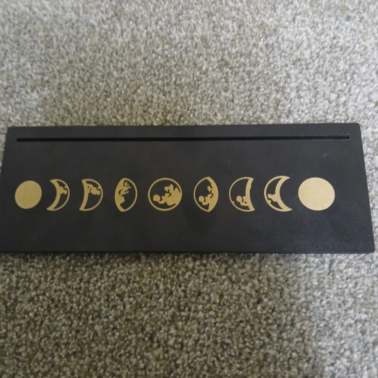 Wood Carved Tarot Card Holder with moon phase design Pick up only