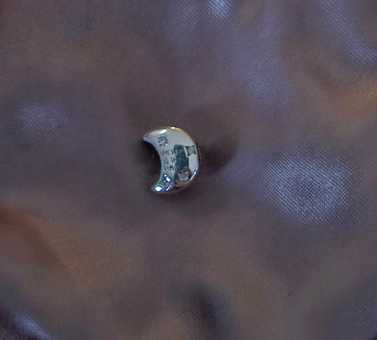479Selling a cute charm featuring a crescent moon and stars design. Says sky is the limit. It would be a lovely addition to any bracelet or necklace!