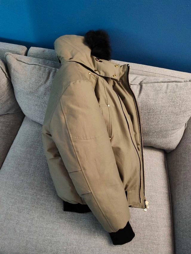60Winter is coming — stay warm in style with this luxurious Moose Knuckles Gold Series bomber. Size XL, Little rapids ballistic bomber jacket Sage color with black fur trim. The shade is a beautiful mix of beige and olive green that looks amazing in person. This is a premium, authentic piece worth over $1,400 plus tax. The jacket is in mint condition, barely worn, and comes from a smoke-free home with proof of purchase. You won’t find another like it in this color and condition. The price is firm and serious buyers will recognize the value. Will not accept lower priced offers. Thanks. For Sale By: Owner