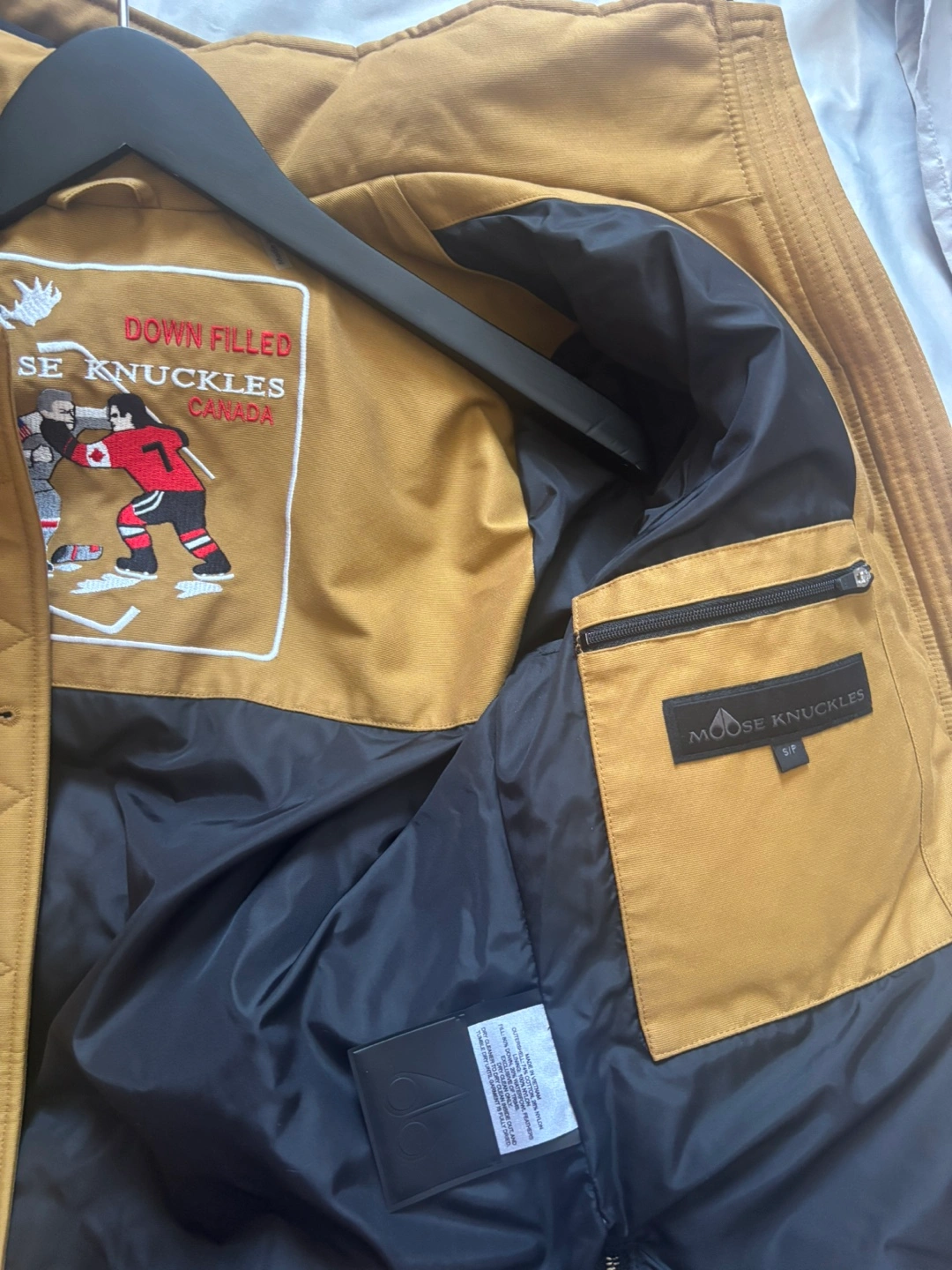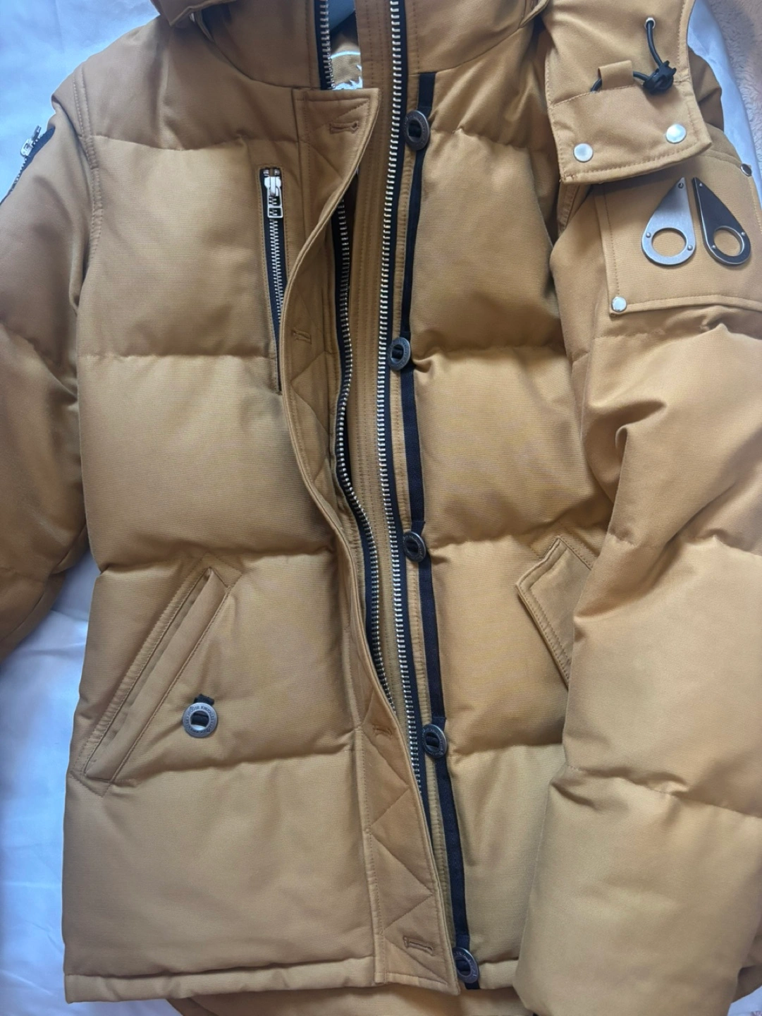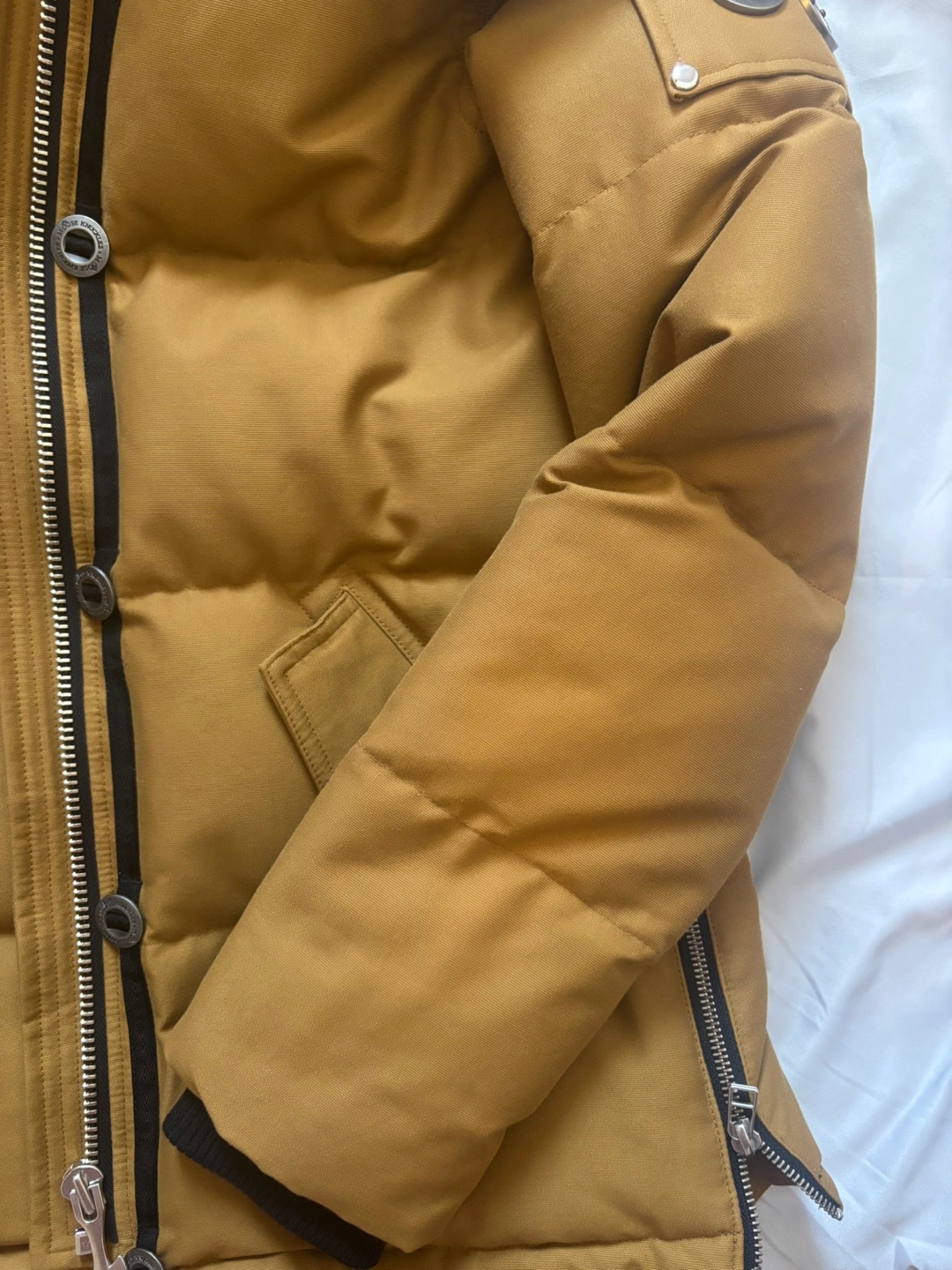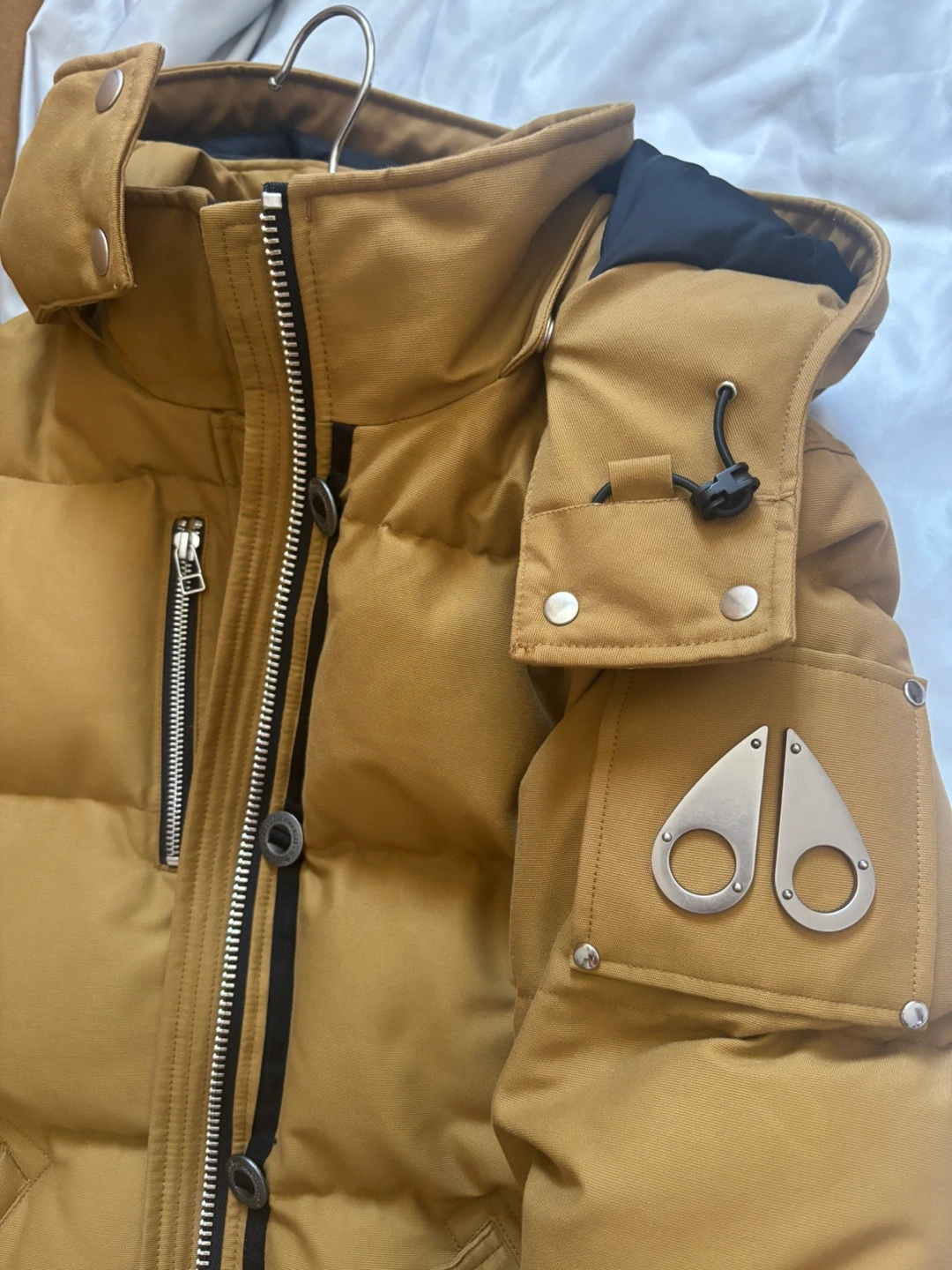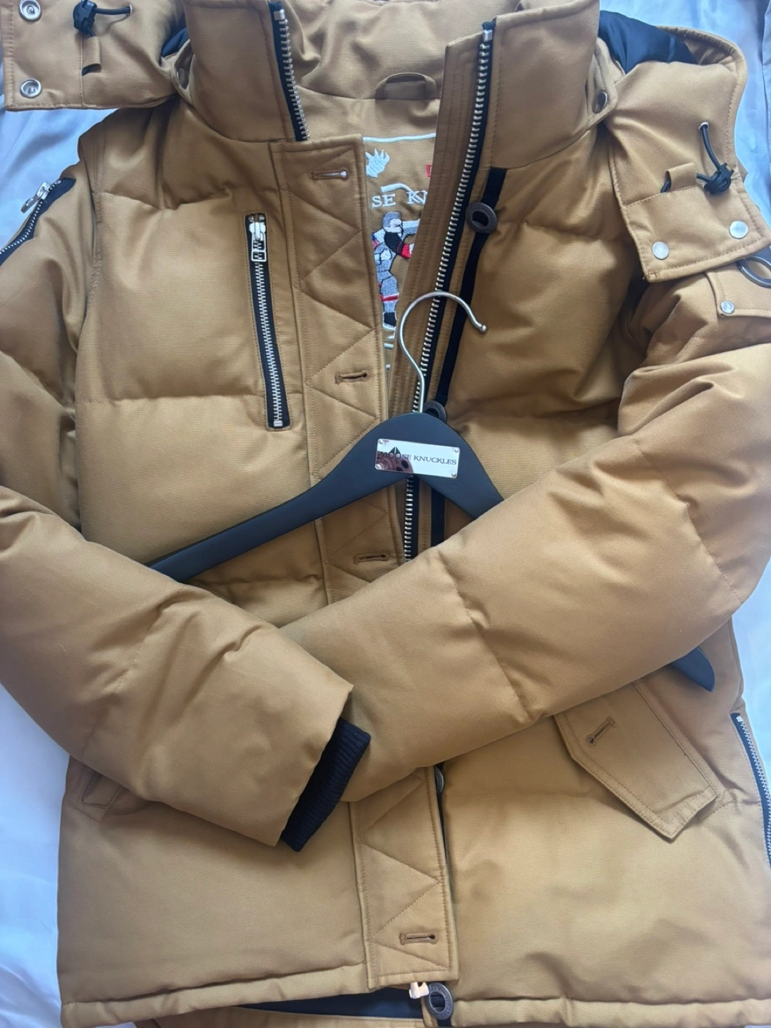 122Women’s Down Jacket – Size Small (Tapenade Color) Selling Moose Knuckles women’s down jacket in size small and tapenade color. It’s in excellent condition with no tears, stains, or signs of wear. Comes with the original hanger and garment bag for proper storage. I’m open to trading for a medium size or considering reasonable offers. Let me know if you’re interested!