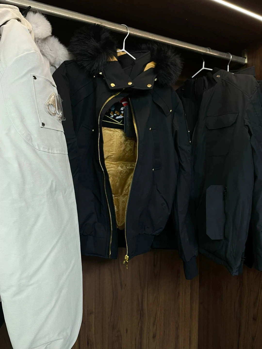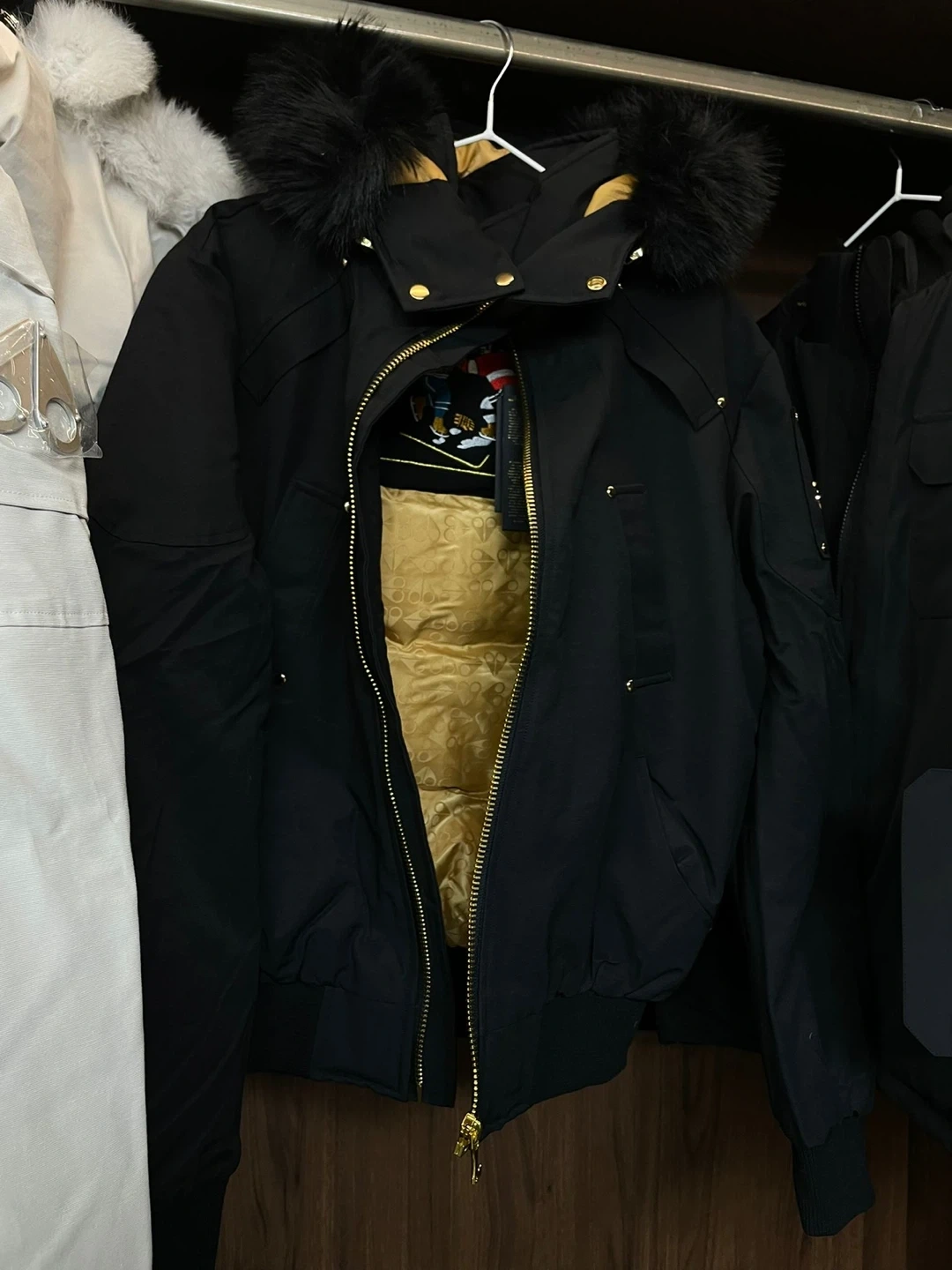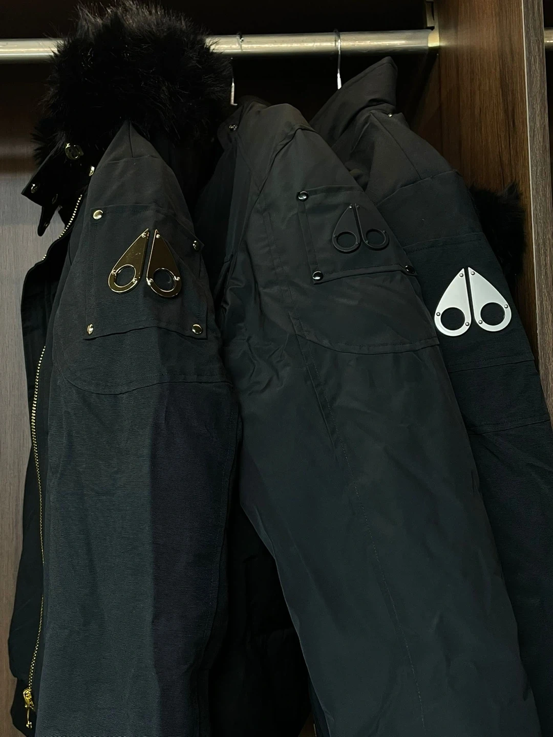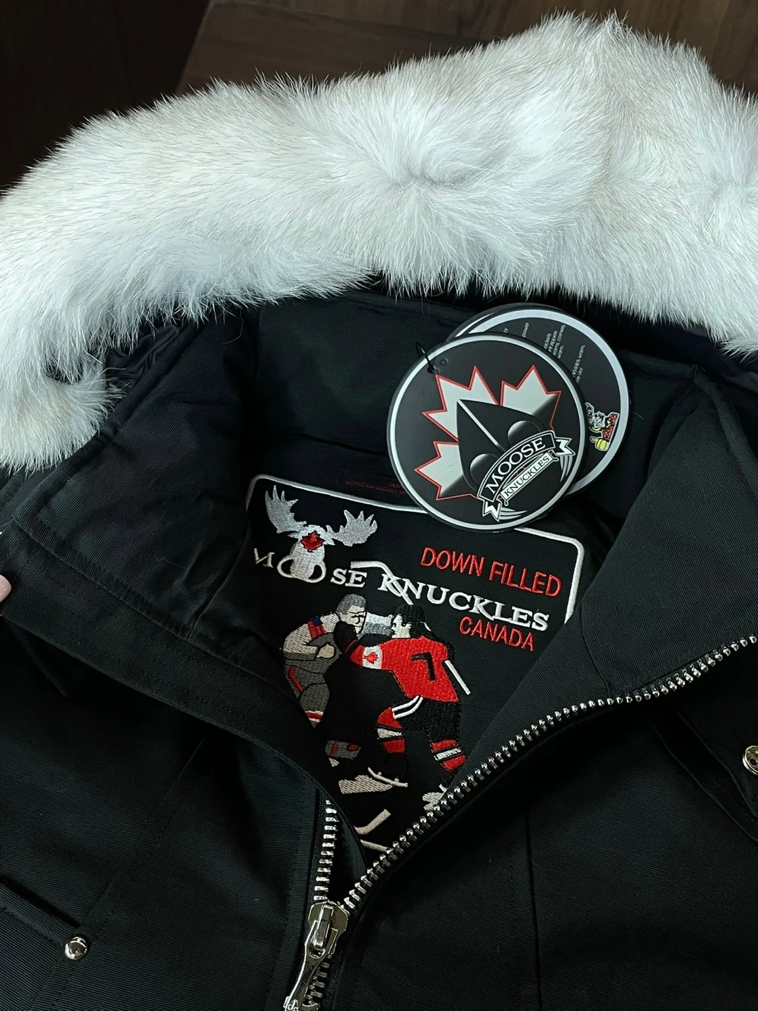 11Selling a Moose Knuckles black down parka. It's in great condition and perfect for the cold weather. Features a fur-trimmed hood and the signature Moose Knuckles logo on the sleeve