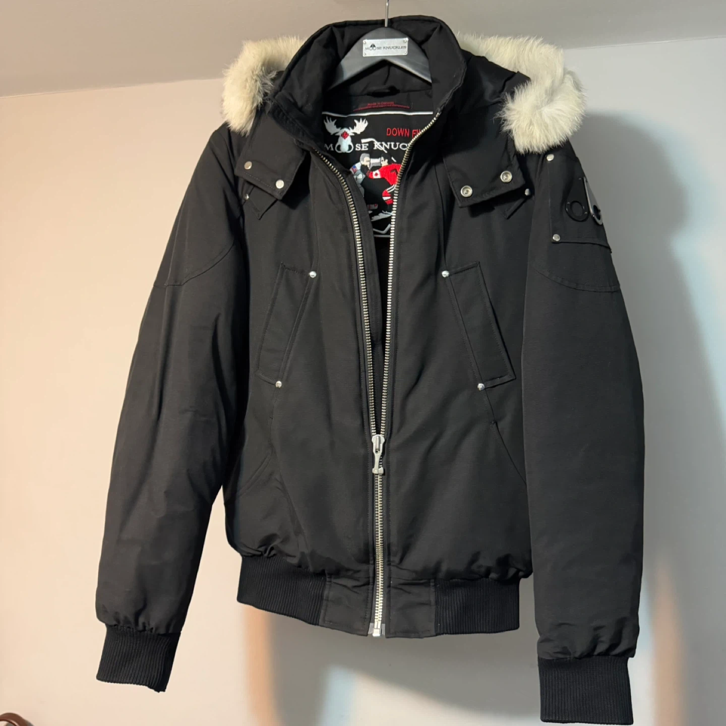 242ONLY AVAILABLE UNTIL NOV 29. Last day I am in the country. ❌NO OFFERS❌ Selling a Moose Knuckles bomber jacket in great condition! It's a size small and comes with a Holt Renfrew garment bag for storage. Perfect for staying warm this winter! Bought it in the start of 2024. In excellent condition. I am moving to another country hence selling it. *NO TRADE; NO SHIPPING; ONLY CASH will be accepted*